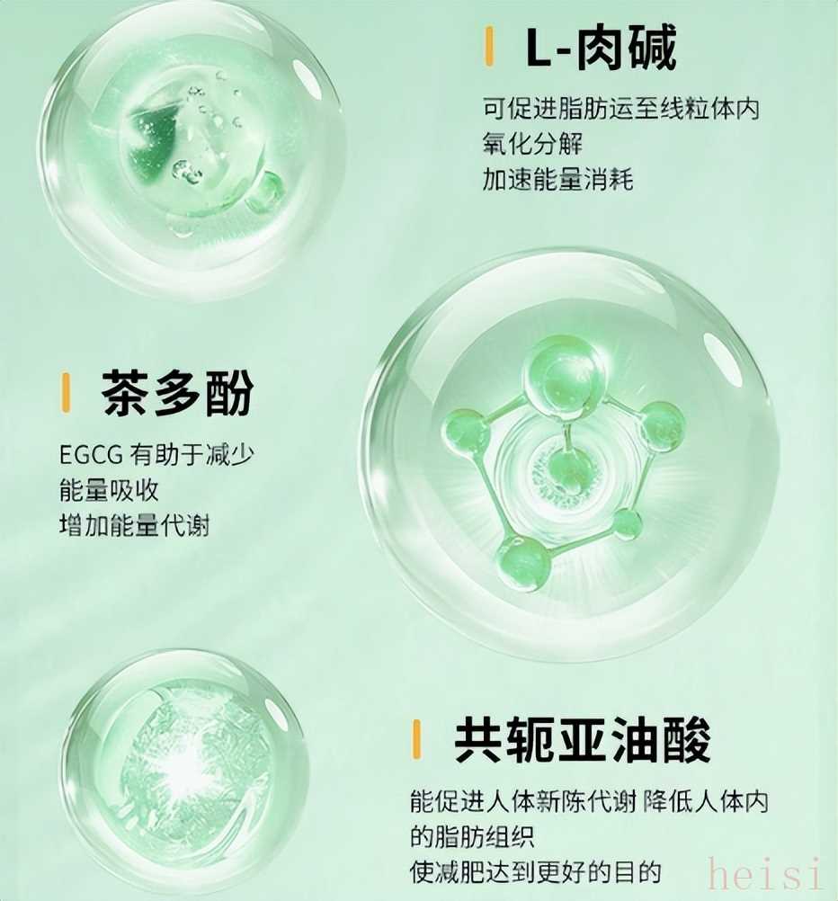 以左旋肉碱、共轭亚油酸、维生素 B5 为核心组合。左旋肉碱加速脂肪氧化,共轭亚油酸针对性减少体脂囤积,维生素 B5 则为能量代谢提供支持。
