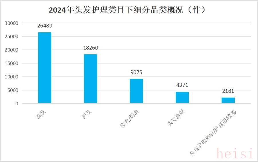 在整个备案大盘中,头发护理品类增速最快,相关新品共计60159件,同比增幅高达15.49%。而基于消费者对去屑、防脱、控油等多样化的诉求,洗护新品日趋多元化,集中表现为洗发、护发、染发/焗油、头发造型以及头皮护理等细分类目。