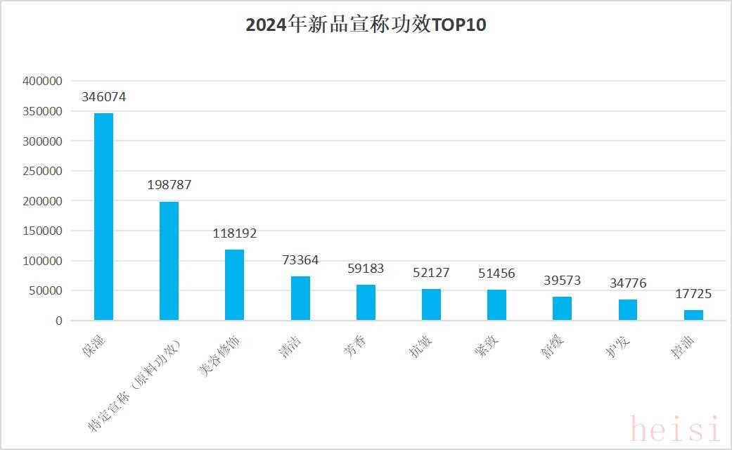 年度TOP10功效:“保湿+特定宣称(原料功效)”,成品牌突破点