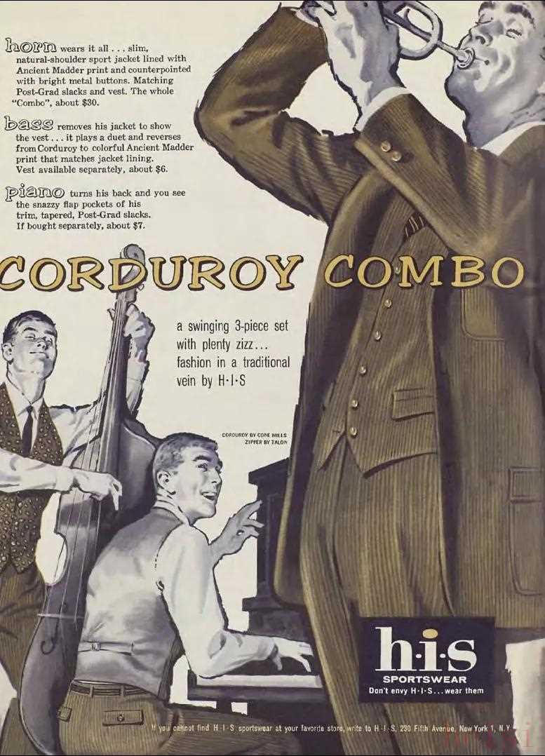 随着战争结束,一路陪伴军人们在各地征战的灯芯绒军服亦开始回流到民间。
