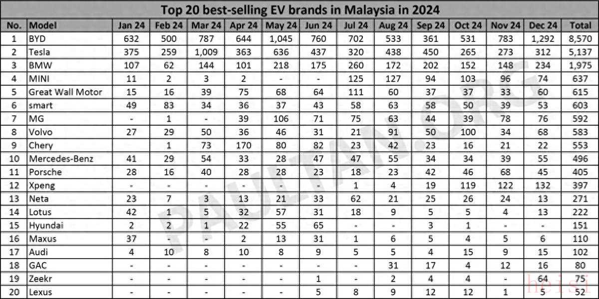 1. "比亚迪的强劲表现":比亚迪在马来西亚的电动汽车市场通常占据头把交椅。其广泛的产品线,包括从经济型(如 Atto 3 / Yuan Plus)到中高端(如 Hilux EV、Seal、ATTO 3)的车型,以及其强大的电池技术和本地化生产(通过 Proton 集团在 Pekan 州的工厂),使其在市场上极具竞争力。2024 年,比亚迪继续保持其市场领导地位。