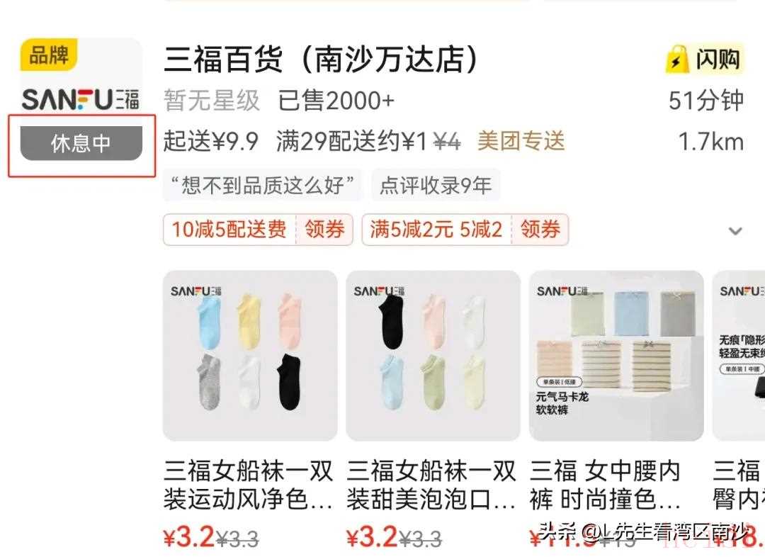 在美团上面也显示“休息中”。