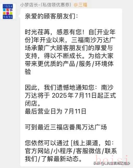 有街坊求证了三福的工作人员得知,南沙三福合同到期闭店,于7月11号正式闭店。