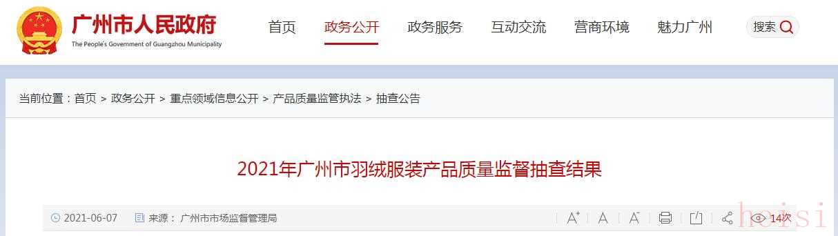 中国质量新闻网讯 (广岛)近日,广州市人民政府公布的《2021年广州市羽绒服装产品质量监督抽查结果》显示,2021年第一季度,广州市市场监管局对羽绒服装产品质量进行了监督抽查,共抽查了18批次样品,经检验,3批次产品不符合标准要求。其中,标称深圳市西遇时尚服饰有限公司(以下简称“西遇服饰公司”)生产的1批次WESTLINK(标称)女装羽绒服(款号:D2001234)被检出含绒量、绒子含量、蓬松度、产品使用说明(标识)不合格。