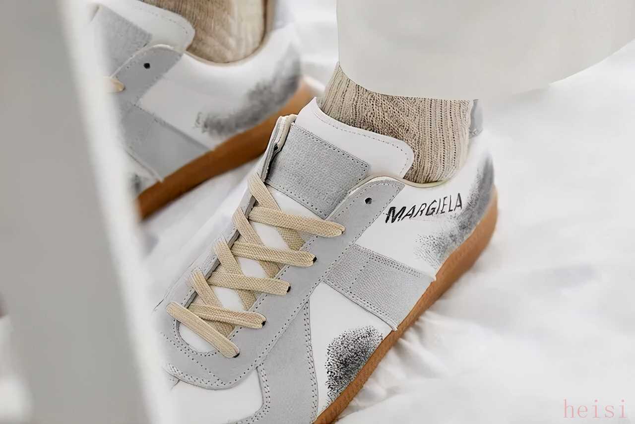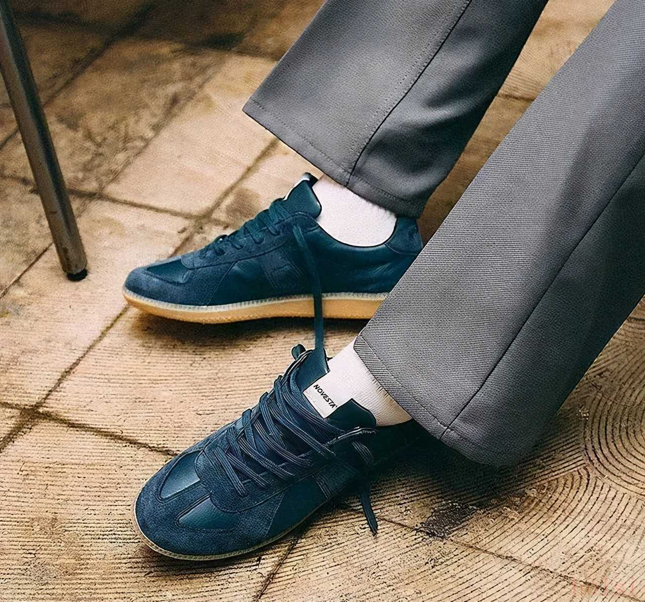 直到它遇见了Martin Margiela,退役的新兵把鞋子卖给了商店,Martin Margiela一下就相中了它,一口气买了十双,在1999年春夏手工展上,以他的同名品牌的款式的出现,德训鞋从此进入到时尚圈。