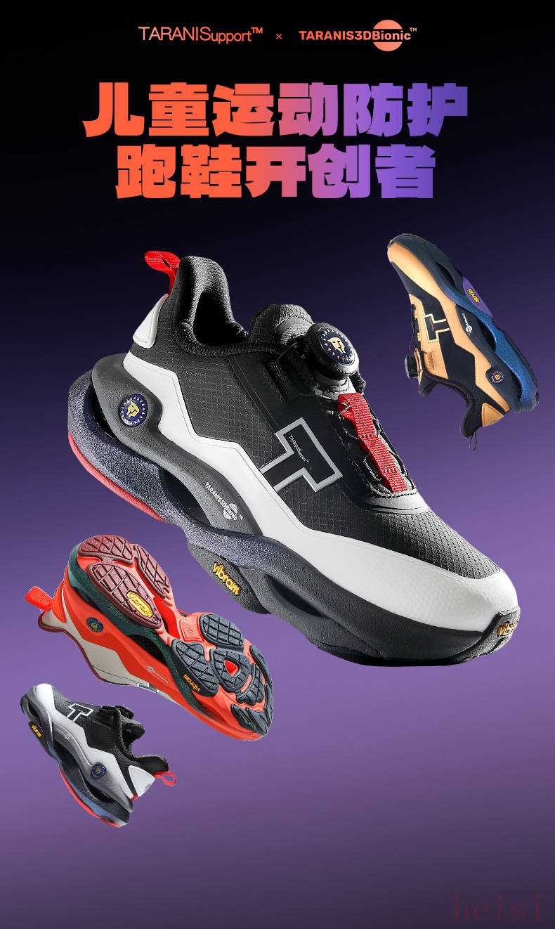 从操场、赛场到山野、大戈壁……在孩子们的运动玩耍方式变得更加丰富多彩的今天,“稳跑鞋”正契合了新一代父母注重体能培养、乐于带孩子体验极限户外的新兴生活方式,为孩子在各类具有挑战性的环境中锻炼体魄、建立自信提供了最充分的“装备”支撑。从“稳跑鞋”的配置性能来看,这可以说是泰兰尼斯创牌10多年来的“巅峰之作”,它足以承载泰兰尼斯成为“全球童鞋之王”的野心。从用料到设计,都对标国际户外运动顶奢品牌的高端线产品,以“顶配+堆料”打造出一款“儿童跑鞋天花板”之作。具体而言,“稳跑鞋”将“稳科技”从“稳防护、稳速力、稳动态”三大方面做到了全面升级,全方位的稳定防护系统让穿着这双运动鞋的孩子们能放心跑跳、肆意比拼,也让父母们能更加安心。首先,“稳防护”主要基于鞋底依据脚型设计T700太空碳纤维构造,可实现稳弹兼备,提升孩子在竞技体育中的运动表现,为整鞋打造了类似汽车底盘“避震平衡器”的效果,加上科技织物包裹的鞋面和后跟T型防护设计,让全鞋的抗扭刚性显著提升,同时保持全鞋的轻盈、透气的穿着体感;其次,“稳速力”则源自“全球户外鞋底之王”、意大利品牌Vibram的“黄金大底”,鞋底通过前掌、足弓和后跟三分区设计,高弹缓震、赋能脚感,减震性能高于专业篮球鞋指标要求,仿生狮爪掌纹设计,使“稳跑鞋”的抓地力更强,这些设计也让“稳跑鞋”获得BVMark防滑认证的童鞋产品;最后,“稳动态”则由诸多细节设计实现,鞋楦加宽18%、旋钮式鞋带设计更易穿脱,在鞋垫方面还提供了适合日常运动场景的Ortholite鞋垫、适合高强度运动的BASF不变形科技鞋垫,以精准应对不同场景需求。“稳跑鞋”一共提供12种配色,高饱和度的绚丽色彩让其成为运动场上引人注目的存在,丰富的色彩也为孩子们提供了足够的选择空间。