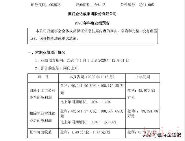 当日晚间,金达威火速发布2020年度业绩预告,称其归母净利润最高可突破10亿元、增速最高可达140%。