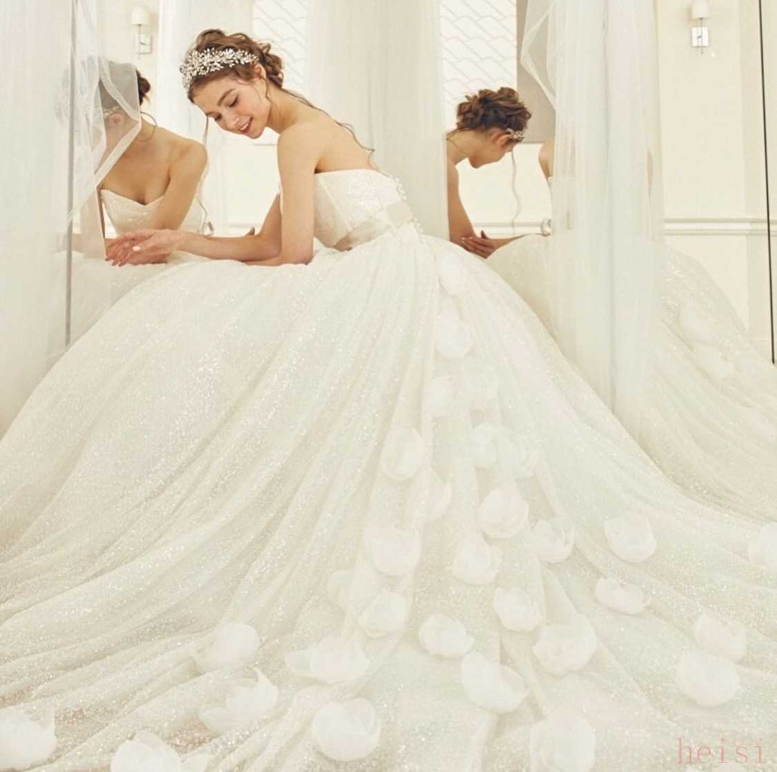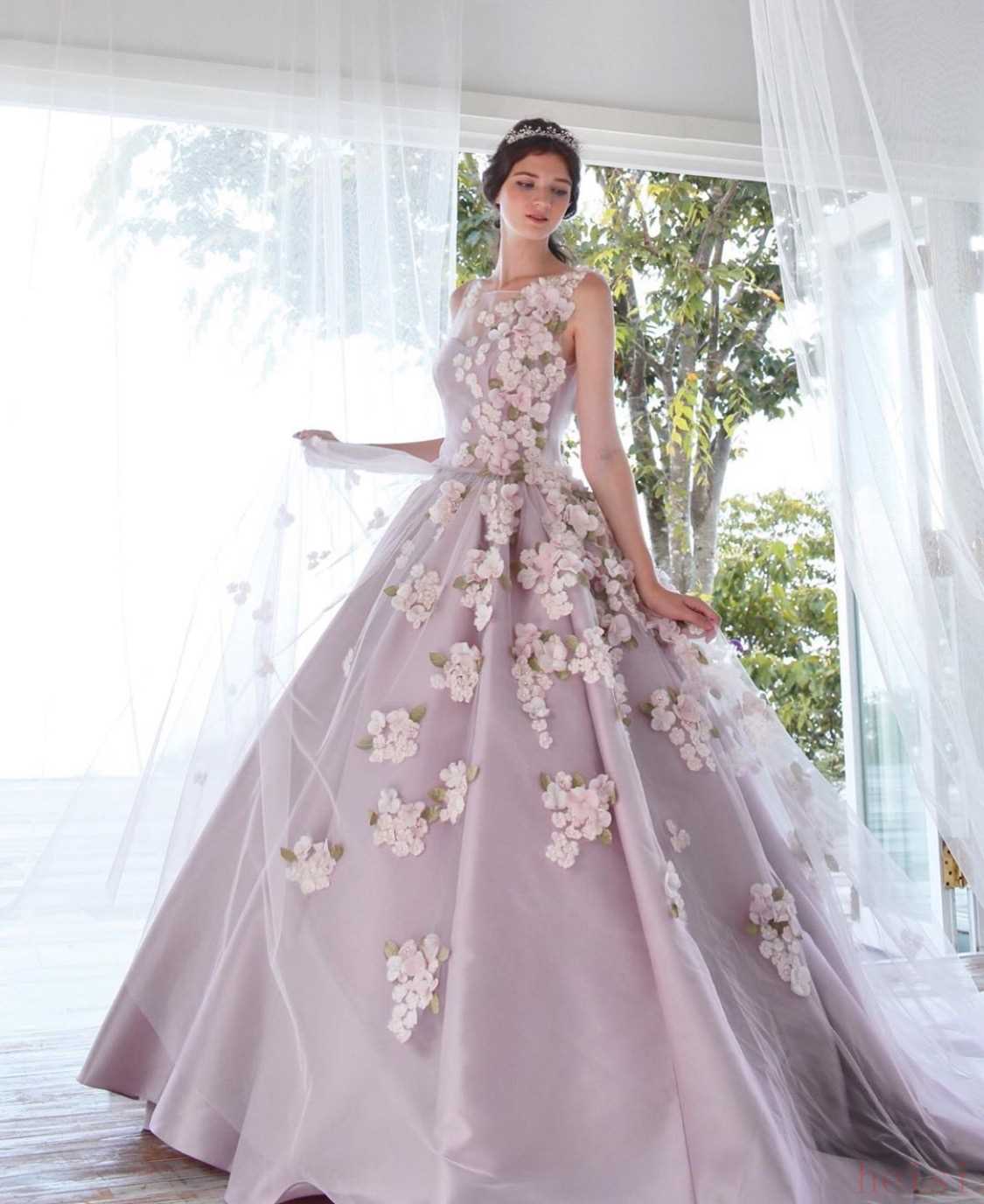 想要小公主气质的一定要试下Kiyoko Hata这款高定婚纱礼服~