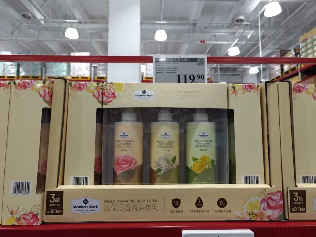Member's Mark高保湿香氛护手霜五支组合装定价99.9元,包含乌木玫瑰、慵懒梦乡等香调,由科丝美诗生产、备案;另一款Member's Mark高保湿香氛身体乳,三瓶售价119.9元,由诺斯贝尔生产、备案。