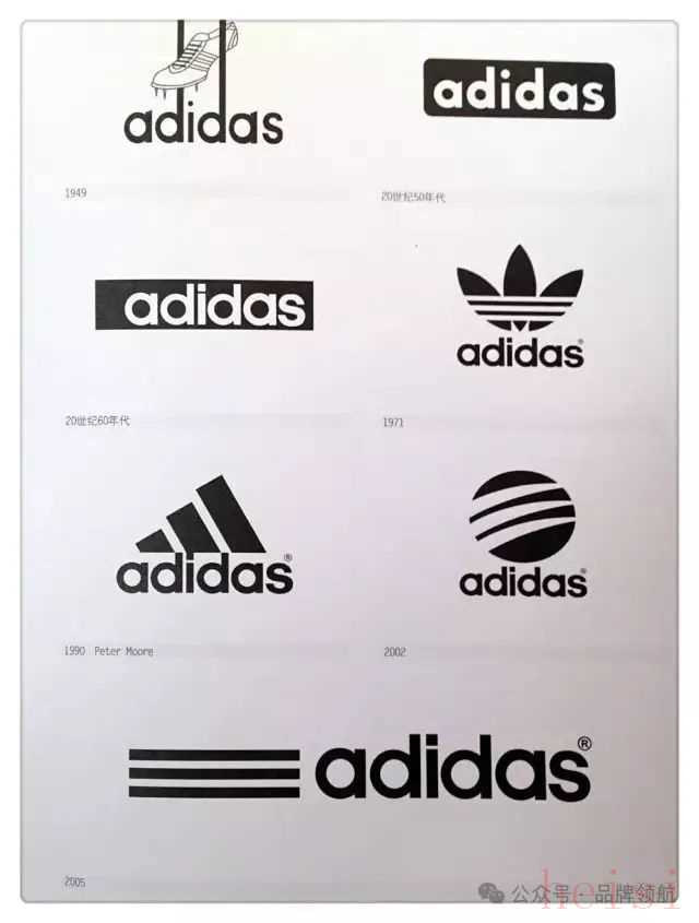 阿迪达斯阿迪达斯的 logo 演变始终围绕市场需求与品牌核心展开。最初的 logo 带有鞋钉元素,直接体现其作为运动鞋品牌的属性,满足了早期消费者对产品功能性的关注。随着品牌向全球拓展,消费者对运动品牌的需求不再局限于功能,开始追求经典与时尚,于是三叶草 logo 应运而生。三叶草形似展开的世界地图,寓意将运动精神传遍全球,迎合了消费者对品牌国际化和文化内涵的追求。当功能性运动需求再次凸显,三条斜线 logo 以简洁有力的形象登场,线条利落,充满动感,精准传达出品牌在运动性能上的优势。而无论如何演变,“三条纹” 这一核心元素始终存在,成为消费者识别阿迪达斯的关键,在适应不同市场需求的同时,保持了品牌的高辨识度。