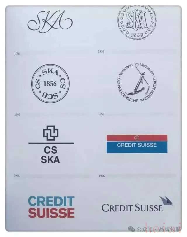 CREDIT SUISSE瑞士信贷的 logo 演变体现了金融品牌对 “稳定、精密” 属性的追求,核心元素从盾形徽章向几何图形转变。1856 年,最初的 logo 是盾形徽章,带有复杂的花纹和文字,象征着金融机构的安全与可靠,符合当时人们对银行的信任需求。1996 年,logo 简化为 “CS” 字母组合,字母设计简洁现代,增强了品牌的识别度。2006 年,蓝色菱形标推出,菱形象征着钻石,代表着价值与坚固,寓意瑞士信贷为客户提供稳定的金融服务,蓝色则传递出专业、信任的形象。这种演变让 logo 从传统的徽章式设计走向简约的几何图形,更适应现代金融行业的传播需求,同时始终保持着高端、可靠的品牌特质,巩固了其在全球金融领域的地位。