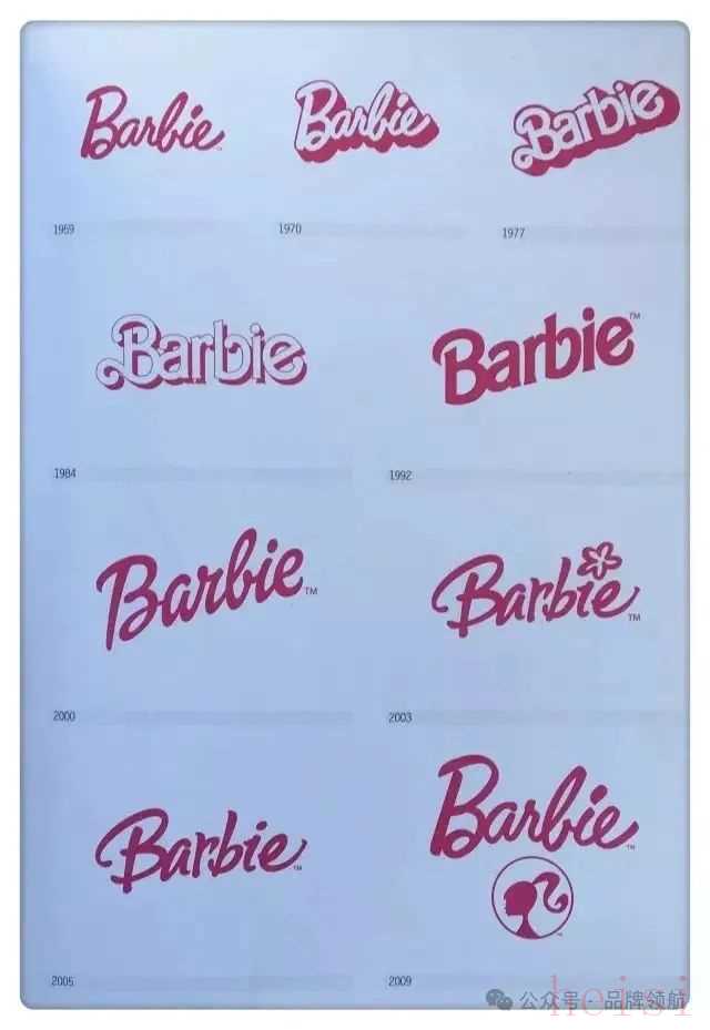 芭比芭比的 logo 演变始终紧扣 “时尚玩偶” 的核心定位,围绕目标群体(女孩)的审美变化不断调整。1959 年诞生之初,logo 是 “Barbie” 手写体搭配侧面剪影,手写体柔美流畅,剪影则直观展现了芭比娃娃的形象,充满了复古的时尚感,契合当时对玩偶精致化的需求。1970 年代,随着流行文化的变迁,logo 字体改为带有波浪线的设计,更显活泼灵动,呼应了那个时代的自由与活力,也让芭比更贴近年轻女孩的喜好。2009 年,粉色渐变立体字 logo 登场,粉色是女孩群体喜爱的颜色,渐变和立体效果则增添了现代时尚感,使 logo 在各种玩具包装和宣传物料上更具吸引力。无论如何演变,芭比 logo 始终保留着对 “时尚” 的追求,通过字体和色彩的调整,精准触达目标群体,巩固了其在时尚玩偶领域的地位。