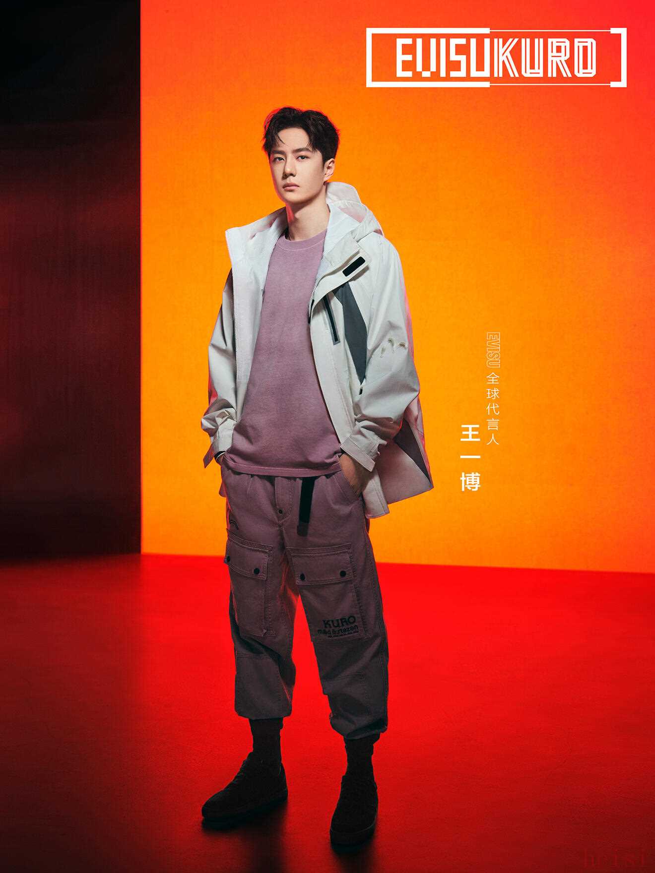 「KURO」在日语中意为黑色,代表力量、神秘、自信、强大、独立、进取。黑与白犹如光与影的关系,犹如王一博演艺生涯也正是围绕光与影。EVISUKURO 作为 EVISU 衍生的独立品牌,区别于 EVISU 的丹宁元素,而是用色彩来强调黑,用平凡创造独特。主打「BEYOND DENIM, BEYOND BLACK.」的 EVISUKURO 在本季呈现出与过去不同的多样魅力,其中「BEYOND DENIM」意味着 EVISUKURO 不仅会延续品牌最经典的 Denim 基因,还会有其它多变、多元的元素。例如本季 EVISUKURO 将运动、机能等元素与 Hi-Street 风格融合,营造集休闲与时尚于一身的运动造型 Athleisure Look。通过极简面料和强烈图案的碰撞,让整个系列充满科技感与未来气息。再以不对称的剪裁打破固有结构,令柔和之中带着一丝率性不羁,更贴近「天上天下,唯海鸥无二」的主题。