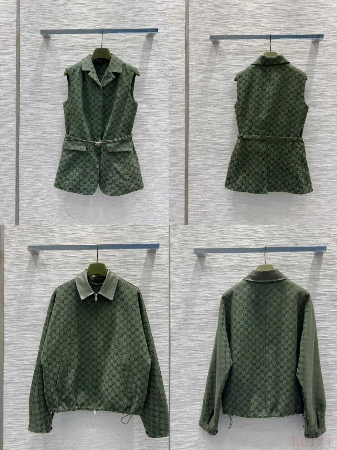 gucci经典的绿色老花外套,复古韵味十足。内搭一件黑色高领打底衫,下身搭配黑色紧身皮裤,凸显身材曲线。脚上穿一双黑色短靴,再拎上一个gucci的酒神包,整体造型复古又摩登。适合在夜晚的派对或者时尚秀场中惊艳亮相,成为全场焦点。