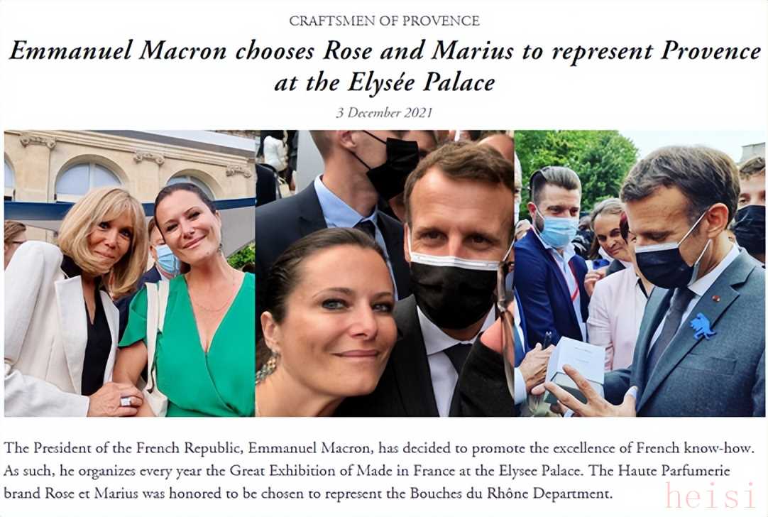 属于普罗旺斯特产了,2021年代表普罗旺斯省斩获“法国国礼”(Fabrique en France)荣誉,是Rose et Marius馥说的Best seller。前味是葡萄浆果带一点硬糖的味道,大人孩子都会喜欢,就很适合过年了。随着香气的扩散会散发出木质檀香的沉稳。是那种让人欢快放松订单气味,留香很久。下图中法国总统马克龙手里拿的就是馥说的“杪夏之香”,和总统夫人合影的这位穿绿色长裙的女士,是馥说的创始人。