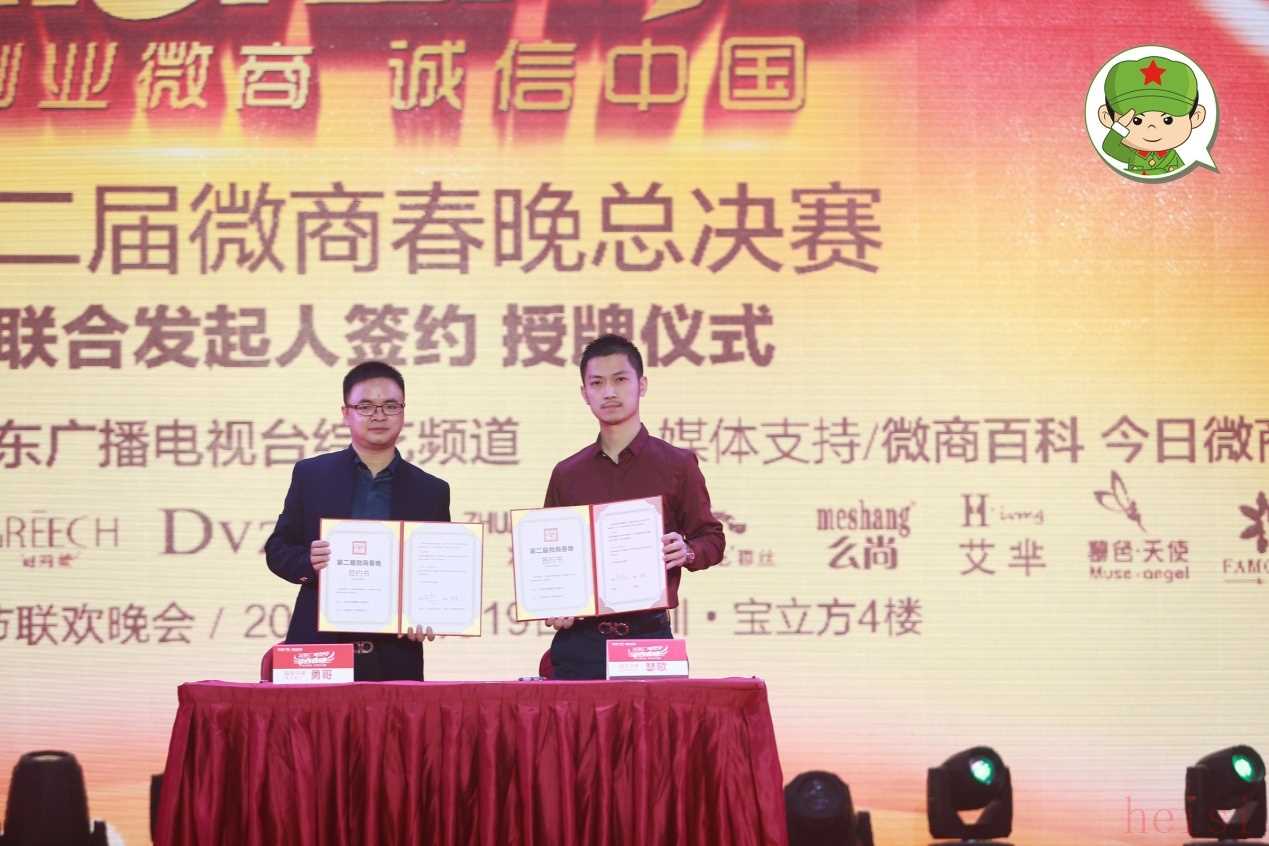 "总结:" 在第二届微商春晚上,品牌“名瑟绿茶内衣”作为联合发起人之一,参与了由蔡海展出席的授牌活动。