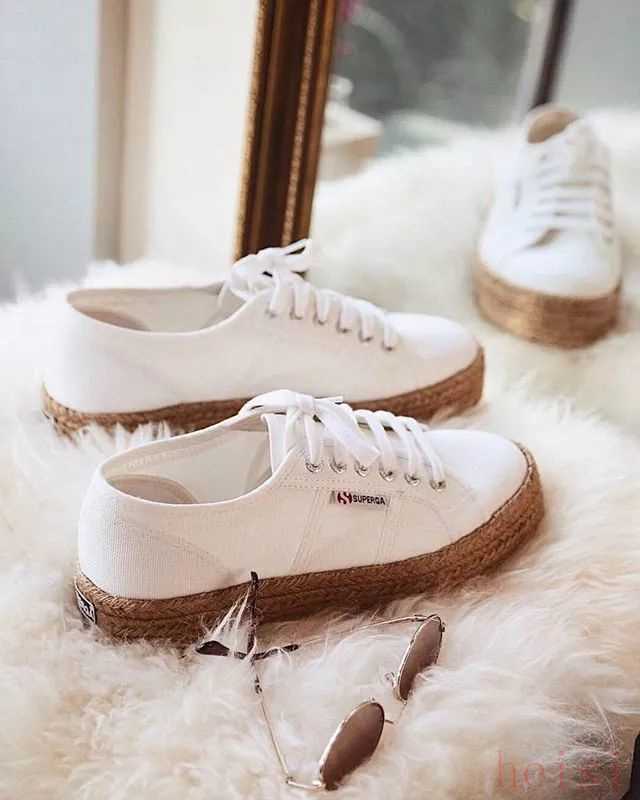 比较好玩的是,SUPERGA 还推出过几款松糕款帆布鞋和草编鞋底的帆布鞋,这样的设计能让小个子的人穿上后特别显高,不过个人不太推荐,帆布鞋还是平底鞋穿着舒服。