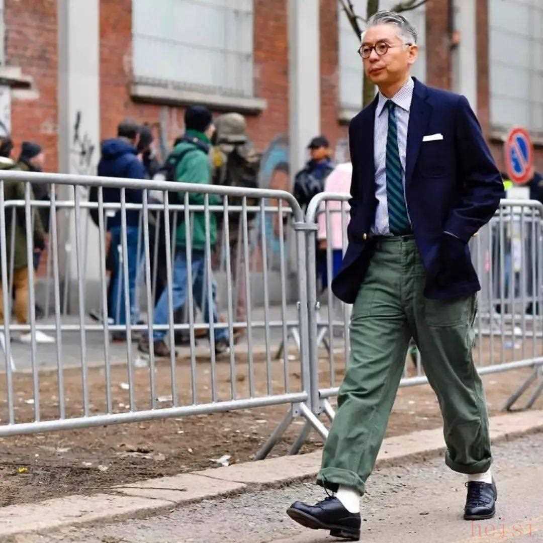 很多工装达人很喜欢将贝克裤和西装混搭,大概是追求一种「斯文硬汉」的独特气质。