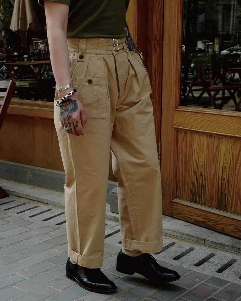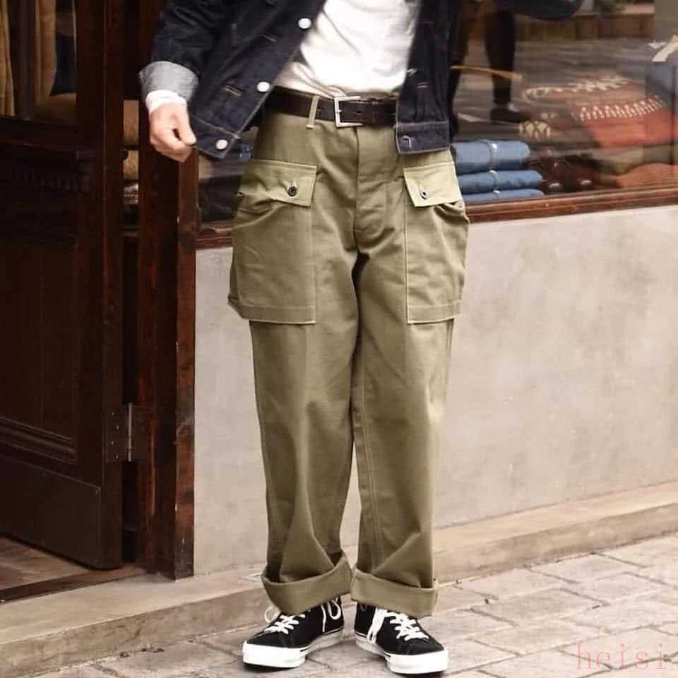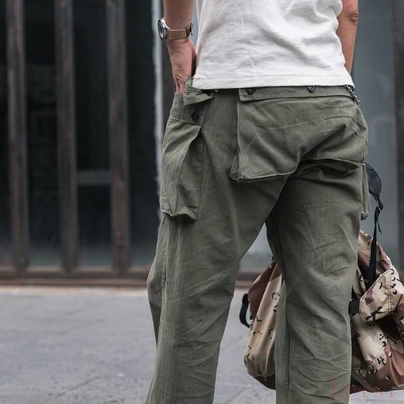 货物裤是市面上最常见的工装裤,它的雏形来自于二战时期的英军作战服P37军裤。
