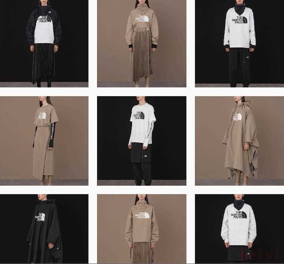 HYKE 成立于2013年,由日本设计师吉原秀明(Hideaki Yoshihara)与大出由纪子(Yukiko Ode)共同创立,主打 “Heritage and Evolution(历史和演化)”理念。与 TNF 的联名合作中(下图),设计上将关注点放在了功能性和剪裁上,合作的四个系列中,产品均以大地色、单一色为主,主要是在 TNF 的经典款添加干净利落的剪裁,同时添加一些别致的细节,例如抽绳设计等。