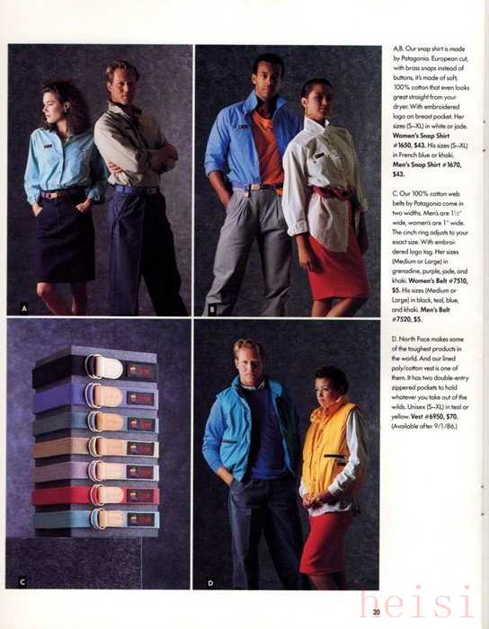 当时苹果公司一口气推出了霓虹广告印花、polo衫、运动休闲装、老爹帽等服饰,甚至还有沙滩巾、咖啡杯、手表、雨伞、帆船的招风帆等五花八门的周边产品。而 TNF 就是该系列产品中服装合作品牌之一,另一户外老牌 Patagonia 亦是合作方。这两个品牌与 Apple 合作了衬衫及化纤/纯棉背心,是整个系列中的“百搭款”。