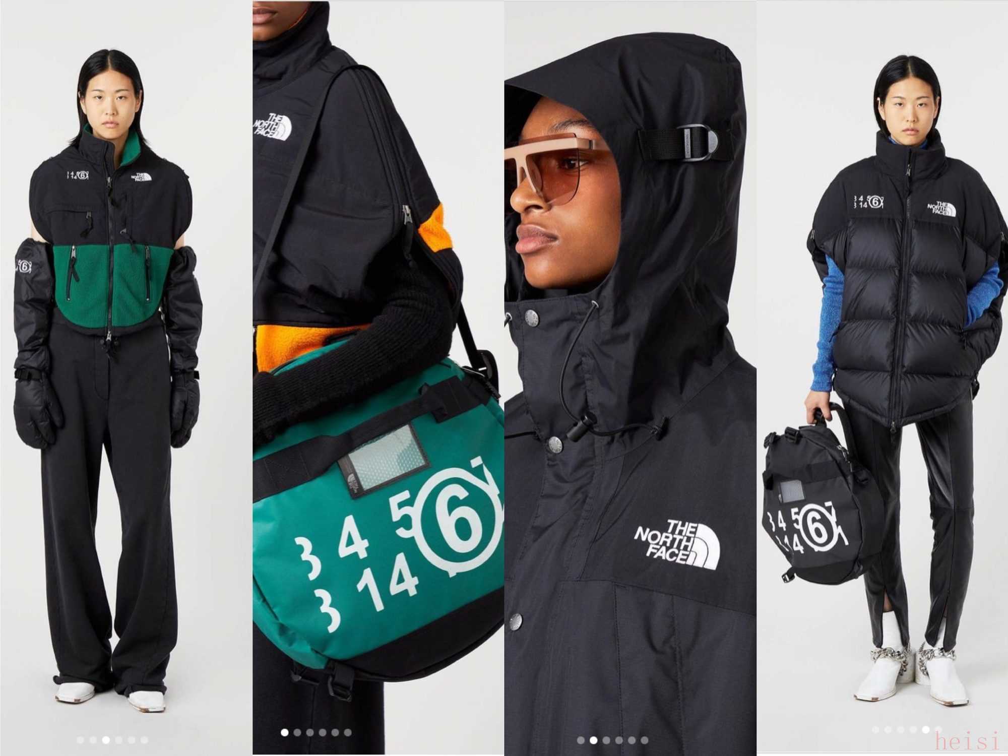 与 MM6 Maison Margiela 的联名系列则出现在了2020 秋冬伦敦时装周上,这次以“无性别”为主题的联名款几乎贯穿整场走秀,合作的灵感来源则是 TNF 的历史档案系列:Expedition System。该系列于1990年推出,包括羽绒服、摇粒绒夹克等多款为了登山而打造的功能性服装。本次合作中,MM6 以解构手法做了全新的阐释。