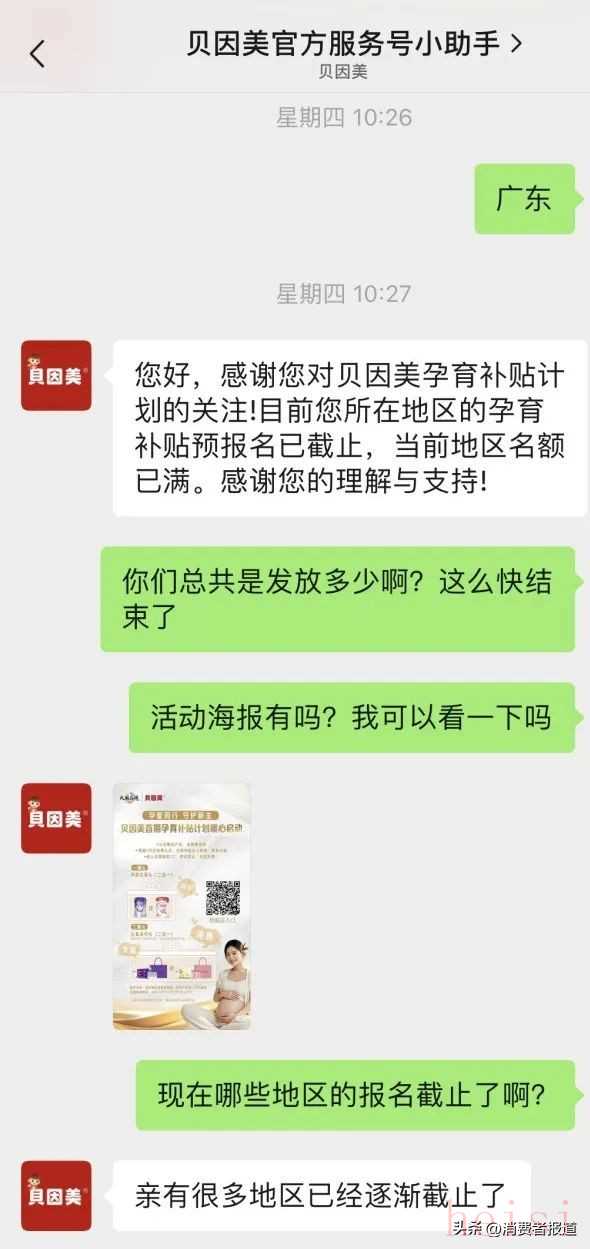 贝因美旗舰店客服向记者表示,品牌旗下的孕育补贴活动目前已在全国多地陆续结束。据记者进一步咨询,广东地区活动已停止报名,相关申领通道已关闭。
