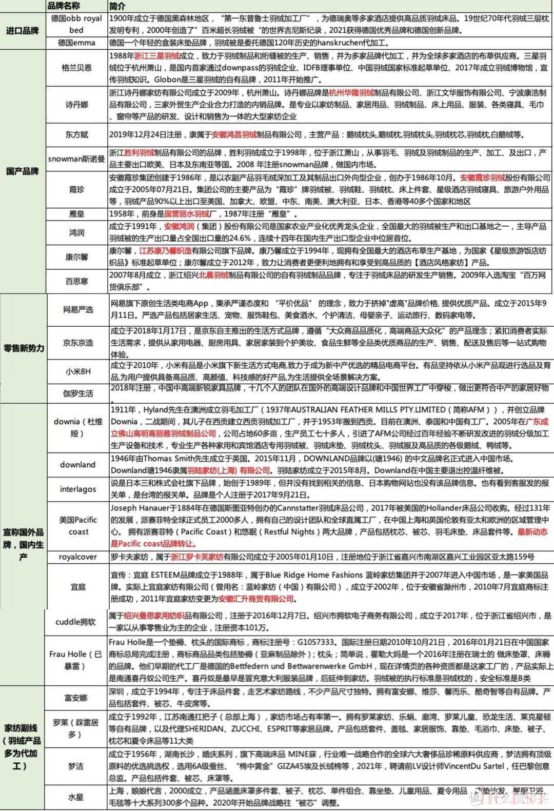下表是本人花了几个夜晚,从天眼查、企查查、商标网等上调研了市面上常见的羽绒被品牌的注册信息和简介,大家在选购的时候,可以参考。
