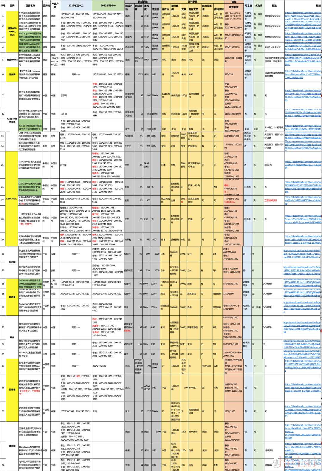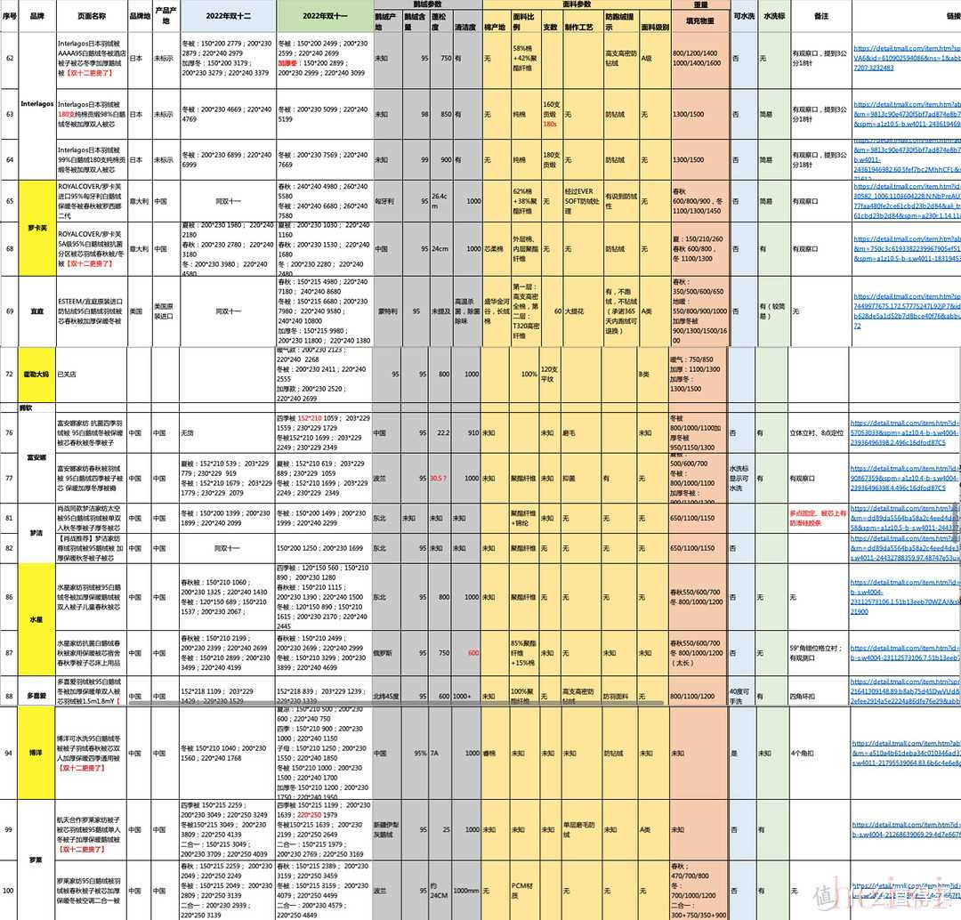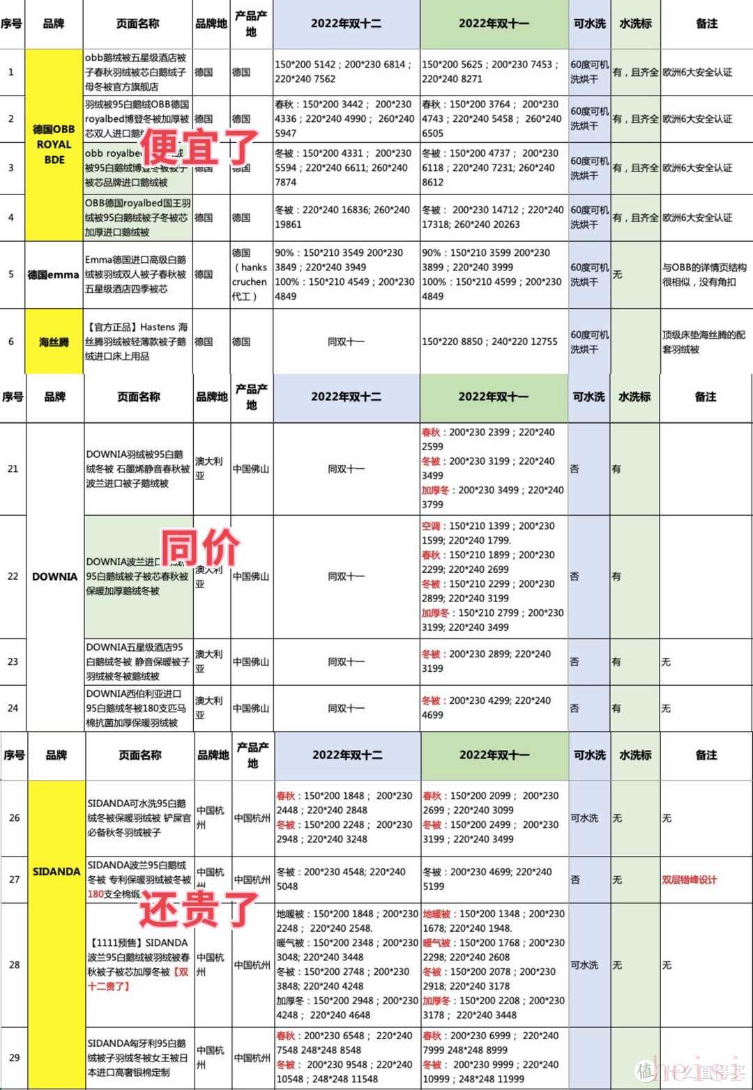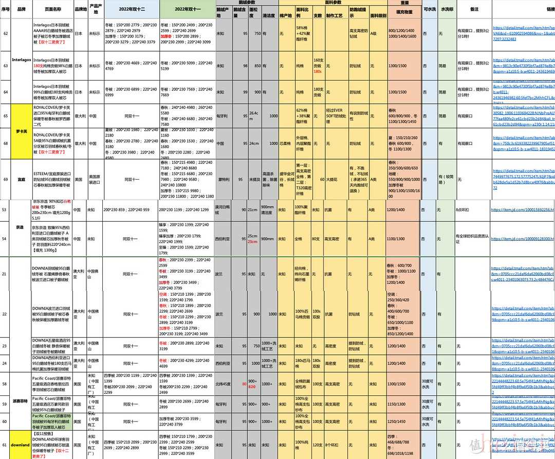 近百款羽绒被的价格,追踪了2年。完整表格如下: