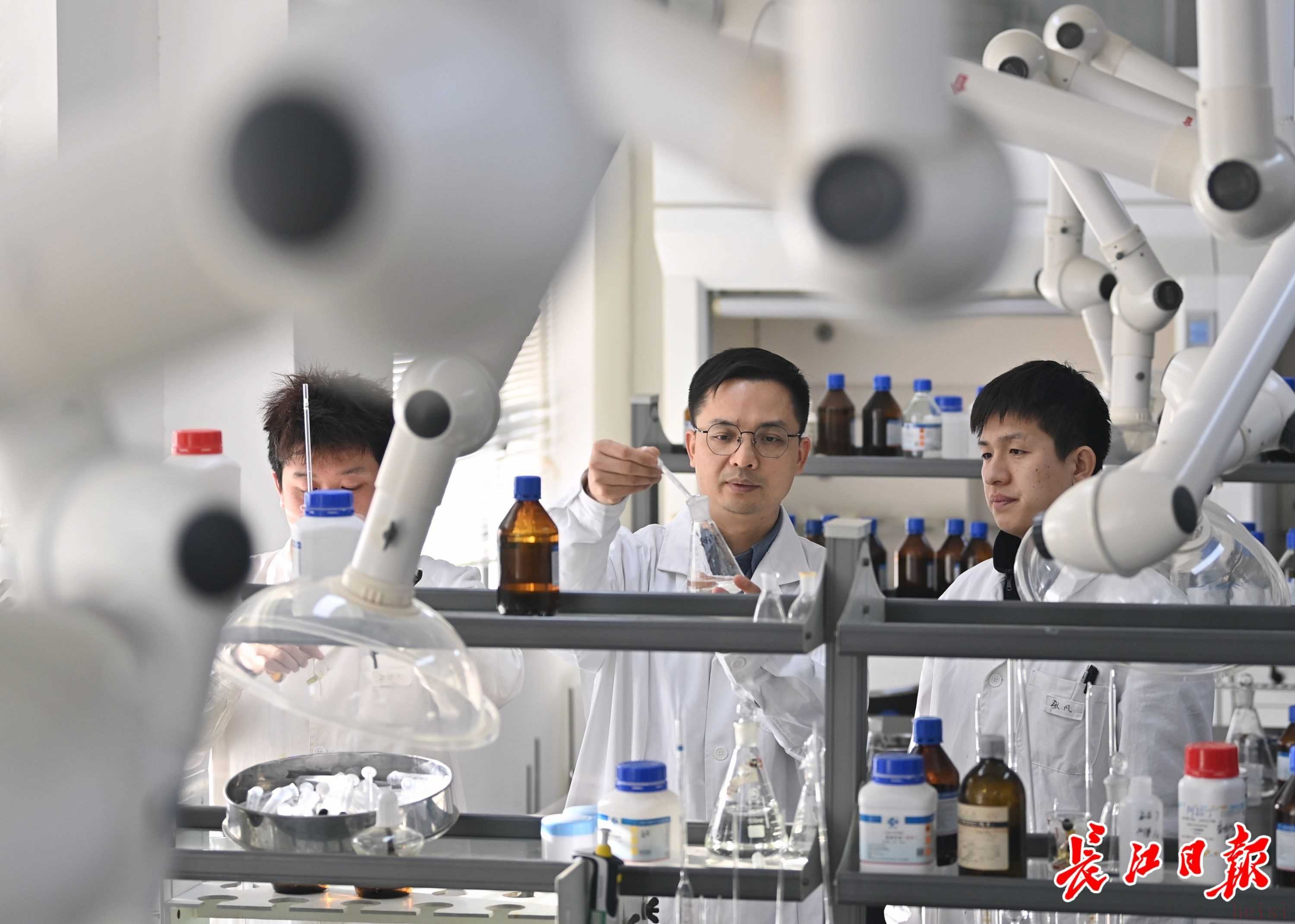 健民集团科研人员在实验室配制药液样品。长江日报记者高萌 摄