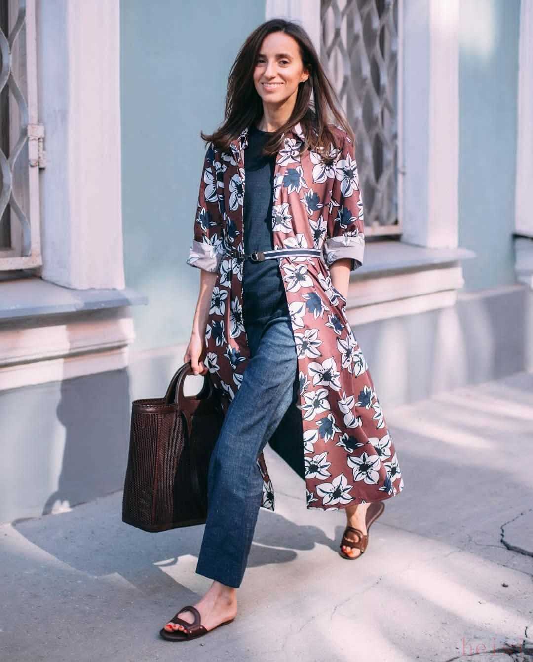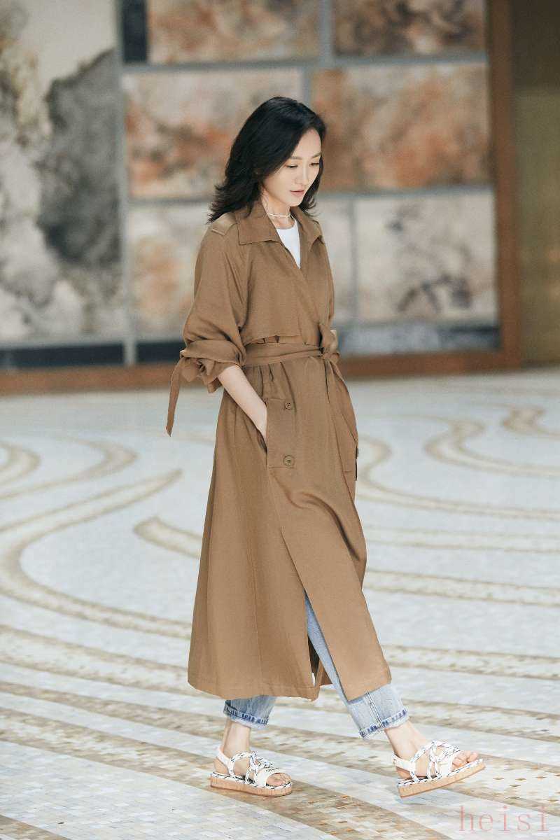 王鸥身穿咖色风衣,搭配牛仔裤和凉鞋,气质十足但又不会过于严肃,其实max&co虽然主打年轻款,但其实骨子里还是有着MaxMara的简约。