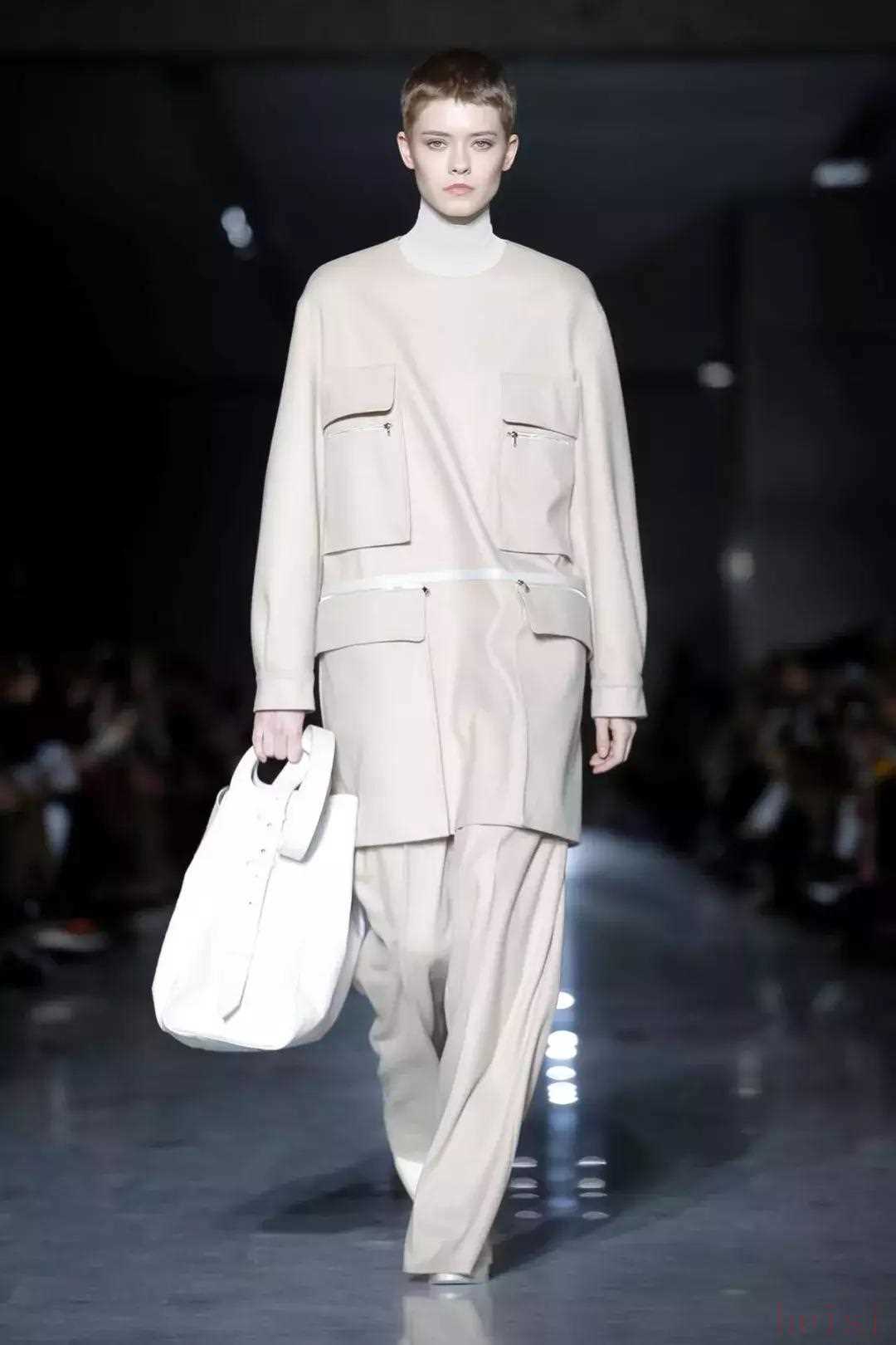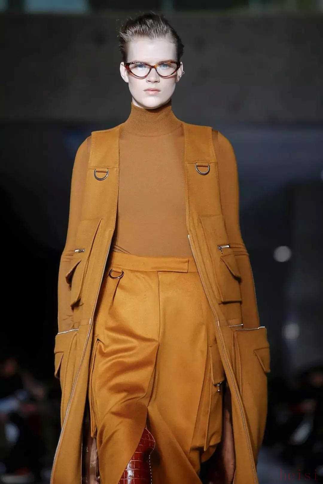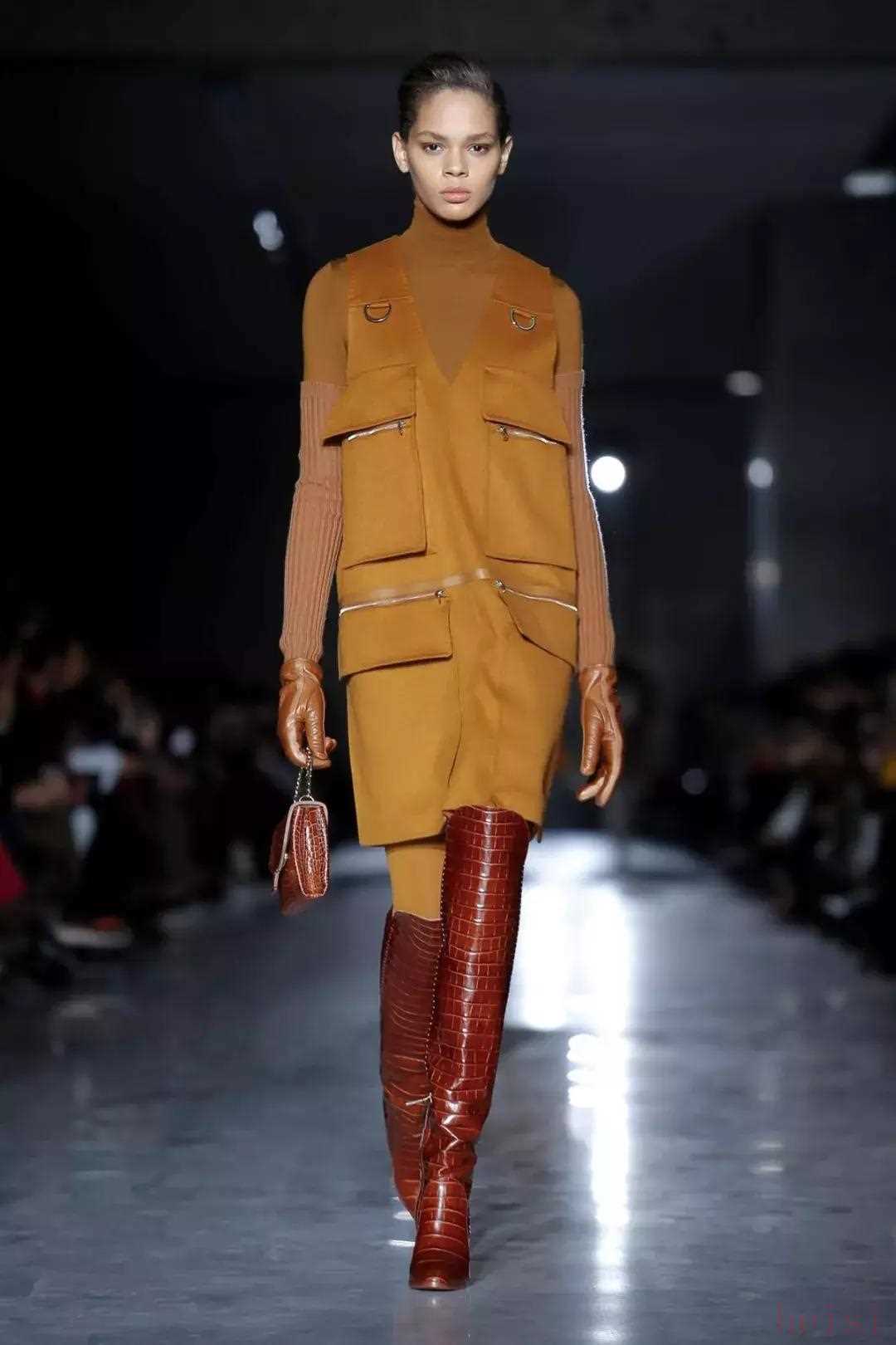 在本季最亮眼的是大口袋设计,剪裁考究的多功能实用马甲、有多个拉链和口袋的夹克和工装裙,英姿飒爽又帅气。