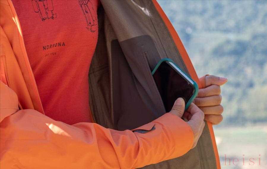 falketind的口袋位于外套中间,即使是背着大背包也可以无碍地拿取口袋的物品。