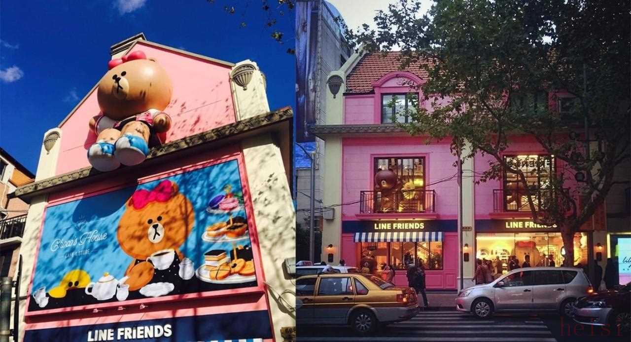 于2016年11月正式对外营业的淮海路LINE FRIENDS旗舰店,是上海首家以布朗熊的妹妹丘可(CHOCO)为主题的精品店,上下三层有近800㎡,内设LINE FRIENDS CAFé。门店外坐在屋檐上的CHOCO颇为吸睛,一度吸引了不少消费者前往拍照、购物。