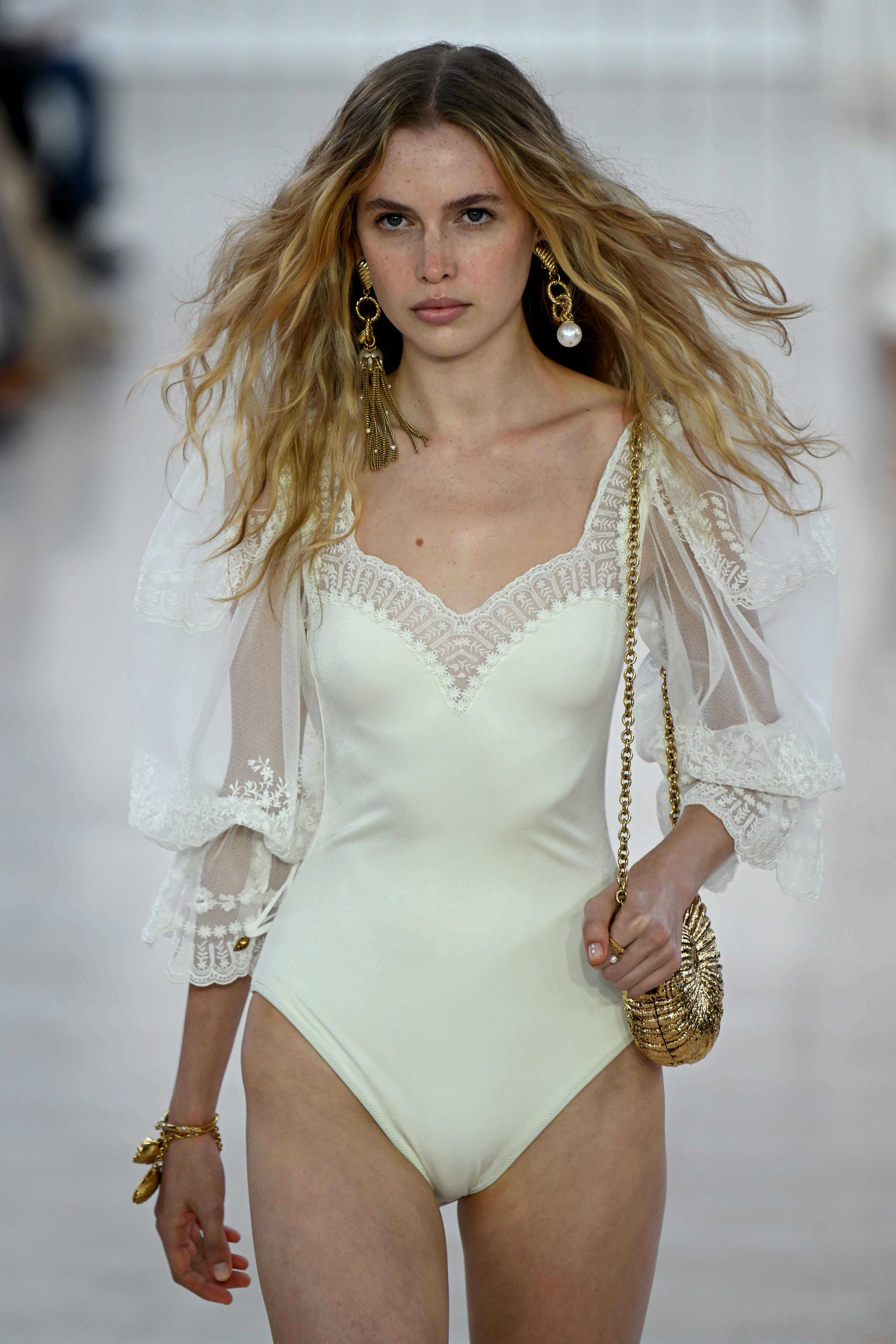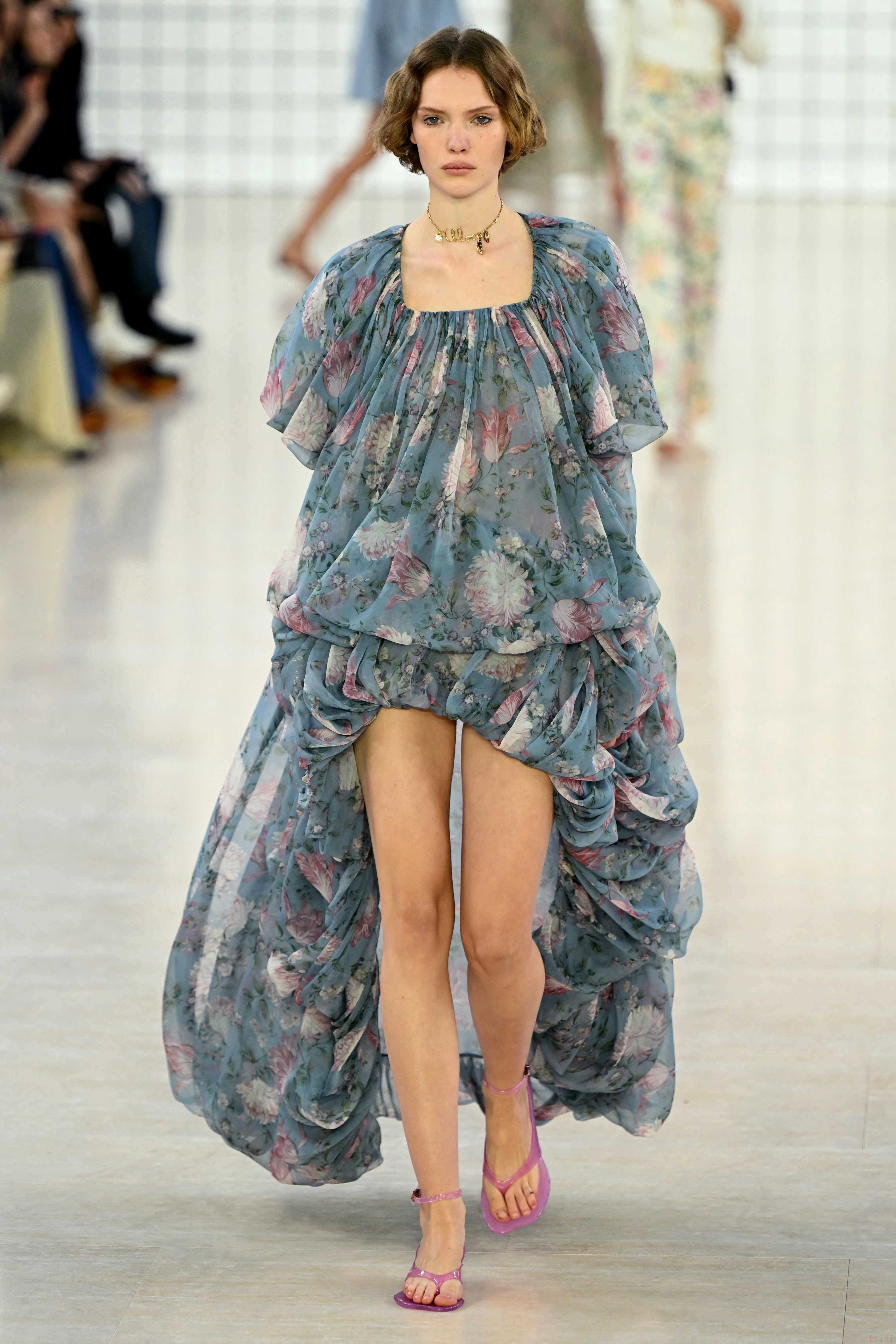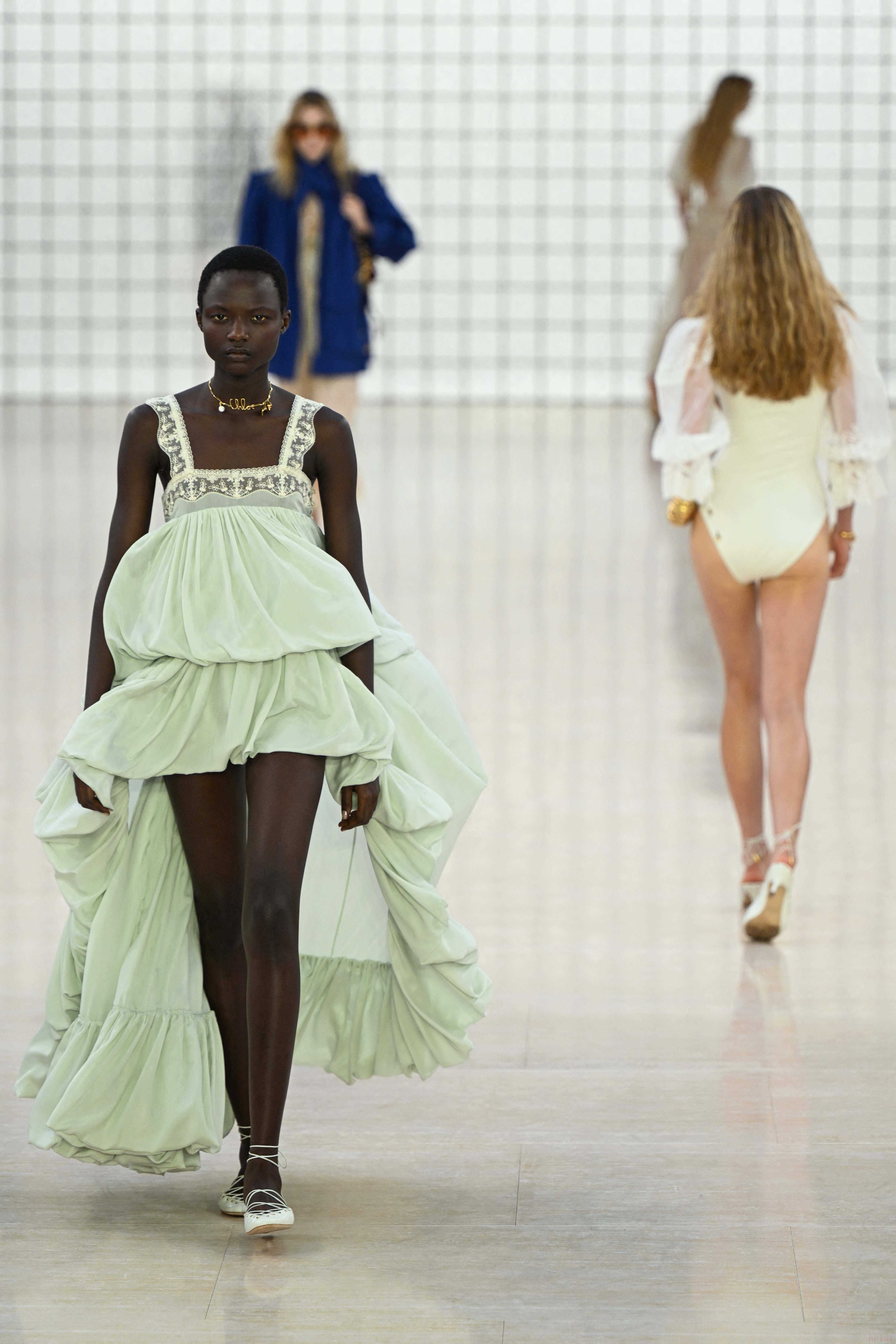 9月26日,模特在法国巴黎时装周上展示CHLOE品牌2025春夏新品成衣。 新华社/法新