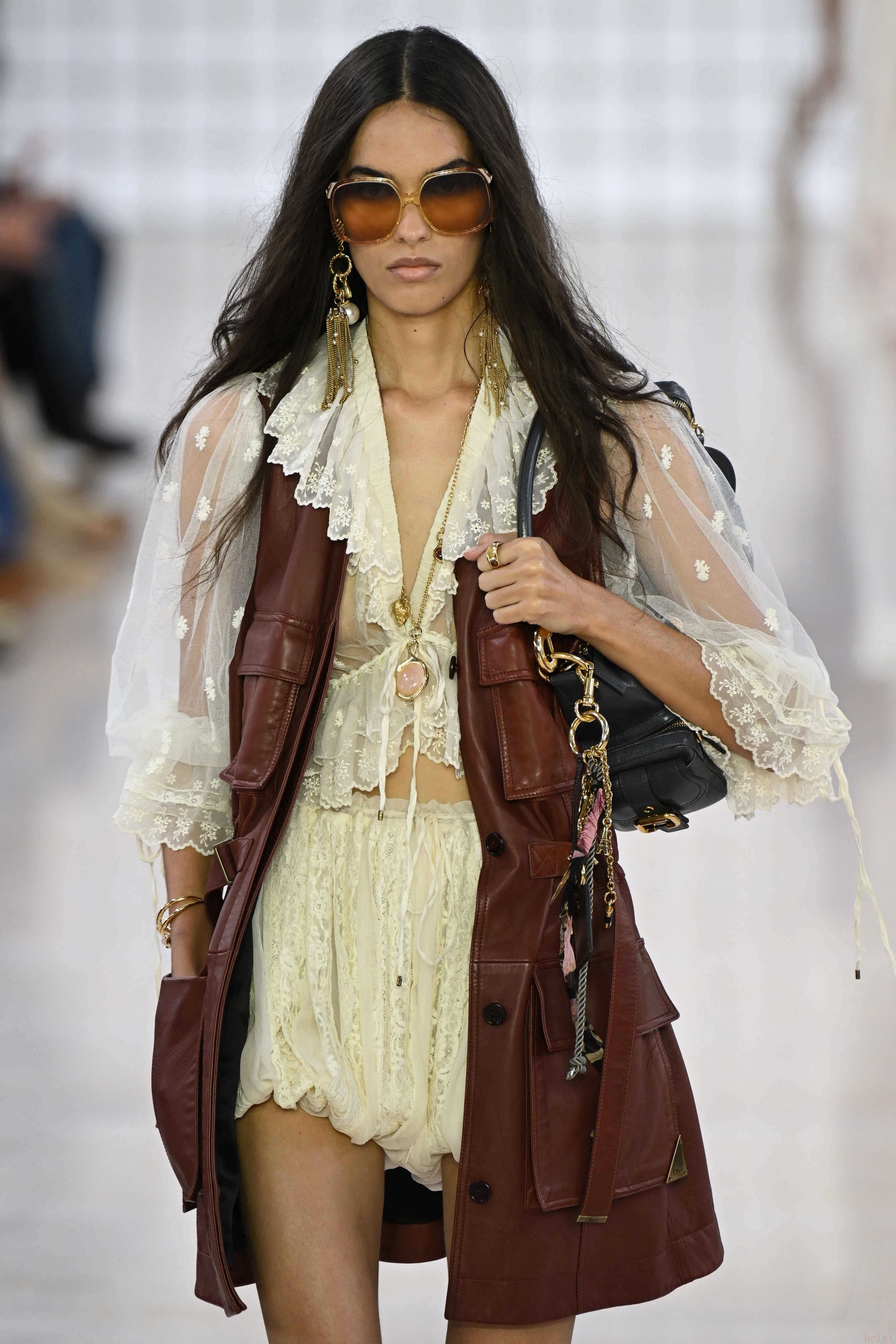 CHLOE 的风格向来以其独特的优雅、女性主义气质和精湛工艺著称。此次秀场,品牌似乎在延续经典的同时,更加强调了"现代性"与"包容性"。