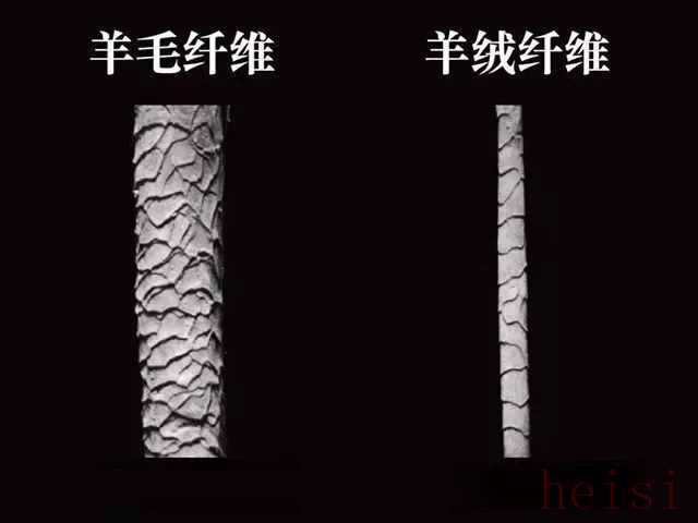 羊绒与羊毛纤维显微镜比对图(图片源自网络)