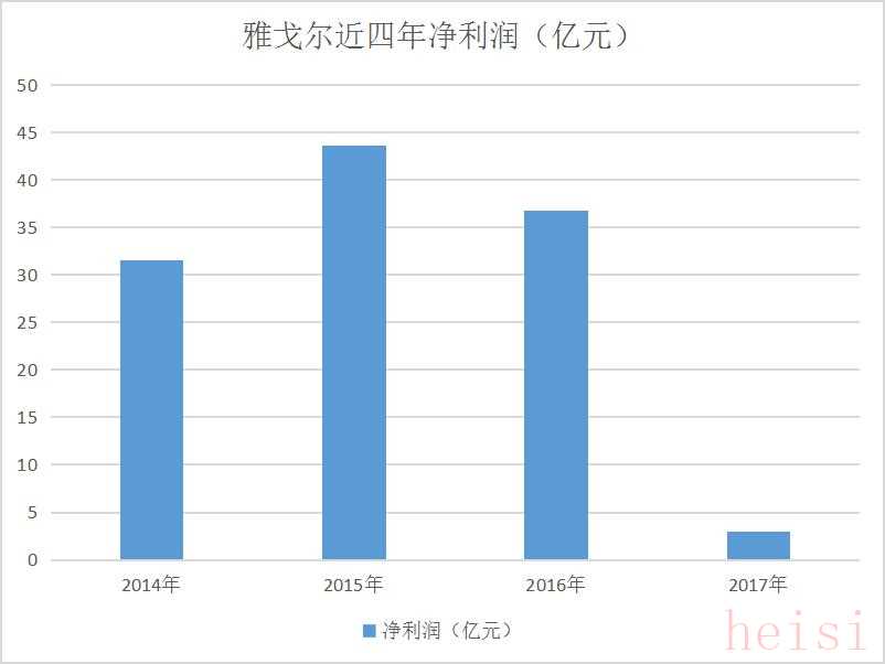 据财报显示,2014年至2017年,雅戈尔实现营收分别为159.03亿元、145.27亿元、148.95亿元,净利润分别为31.62亿元、43.71亿元、36.85亿元,2.97亿,。