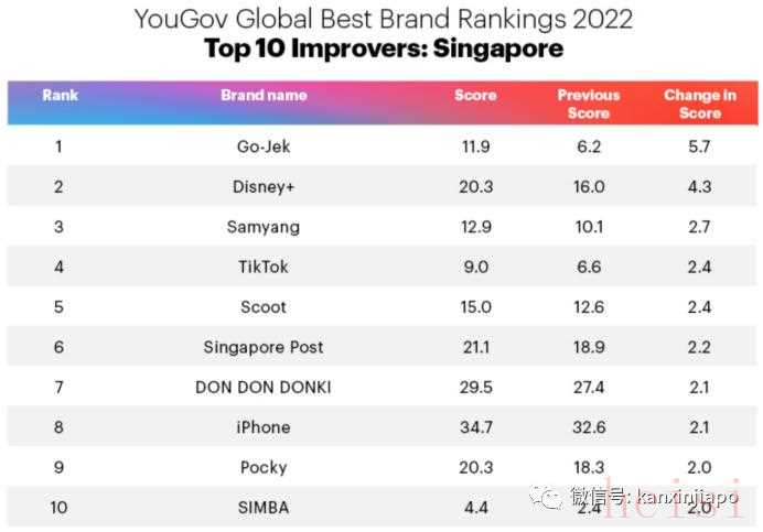 11月16日,英国民调机构(YouGov)公布了新加坡2022年十佳品牌和十佳提升最大品牌的排名。