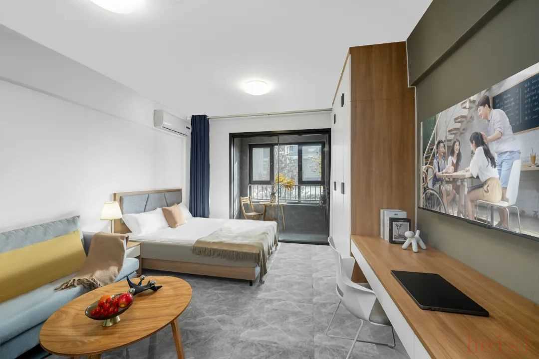 在内部配置方面,房间内大床、沙发、衣柜、餐桌(部分房型)等基础家具配置齐全,基本实现拎包入住。包括空调、环保热水器、滚筒洗衣机、55寸智能电视等家电充分满足日常居住所需;厨房内还配备冰箱、电磁炉、抽油烟机、微波炉(部分房型)也可以满足日常做饭的需求。