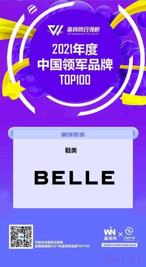 近日,“赢商网大会暨『赢商网百强榜』研究成果发布”在上海举办,百丽国际旗下同名主品牌BELLE荣登“2021年度中国领军品牌TOP100”榜单,并成为“鞋类”唯一上榜品牌。