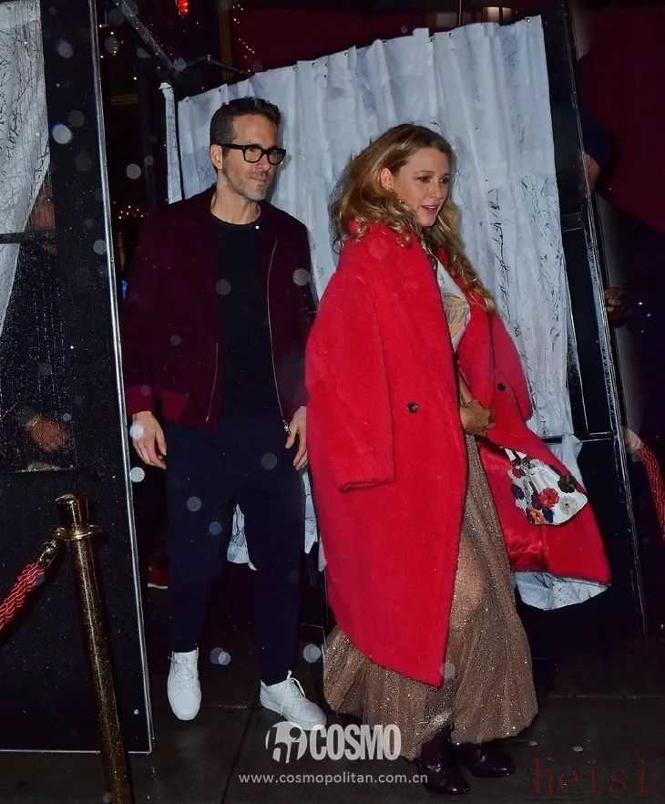 之前Blake和老公参加霉霉生日会那次也是这样的思路,红色外套还将她衬的明艳无比,走在老公前面也是一脸幸福娇妻的模样~