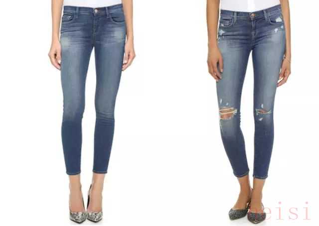 推荐款式:七分牛仔裤、九分喇叭破洞牛仔裤