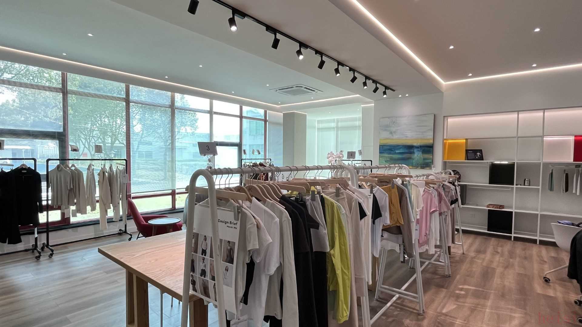 勤拓还在工厂一楼设置了一个情景化展厅,用于展示反映最新时尚趋势的样衣。每当接待初次洽谈的客户,勤拓都会对方亲临金山工厂参观。这里不仅可以直观看到最新打样的产品,还能全面了解即将在越南和安徽复制落地的最新生产流程。这是勤拓核心能力最集中的呈现。