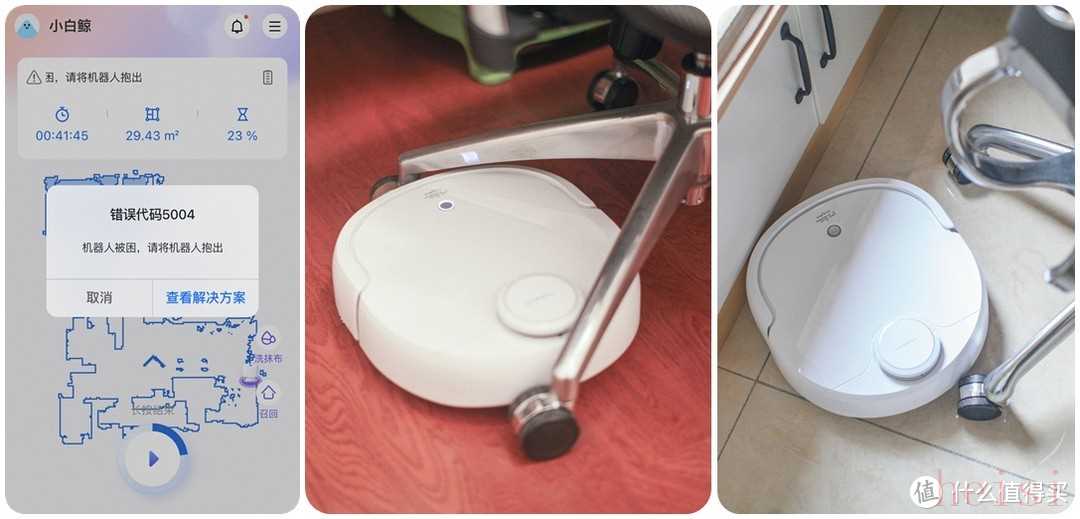 云鲸J2还有个最致命的BUG,那就是上图中这种电脑椅,这货每次打扫到这种椅子都会被卡住,在我测试它的这几天中,这货被卡住好几次,弄到后来我都不敢让它进书房了。