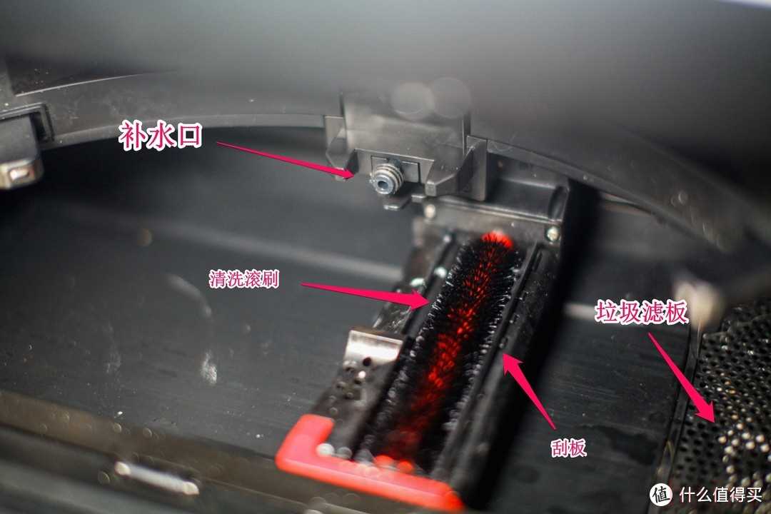 石头G10S Pro的基站则必须拿出来单独说说,这是本次测试清洗拖布最为干净的基站方案(那三个是拖布去蹭基站,石头是基站里的清洗毛刷和刮板主动来蹭拖布)。由于毛刷的清洁能力远超注塑刮板,因此基站内部非常干净,而且比起科沃斯来,也没有发现集尘漏灰的现象。