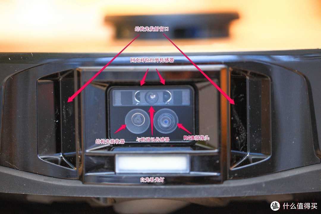 接下来介绍的前置导航传感器,就是扫地机器人中技术差异最大的部分了,不同厂家的方案各有千秋。上图是石头G10S Pro的前置部分,可以看到这货已经发展到非常复杂的程度,除顶置LDS(三角/dToF)导航测距外,前置结构光+摄像头的避障配置让石头可以识别各种障碍物种类,并对应采取不同的避障策略。