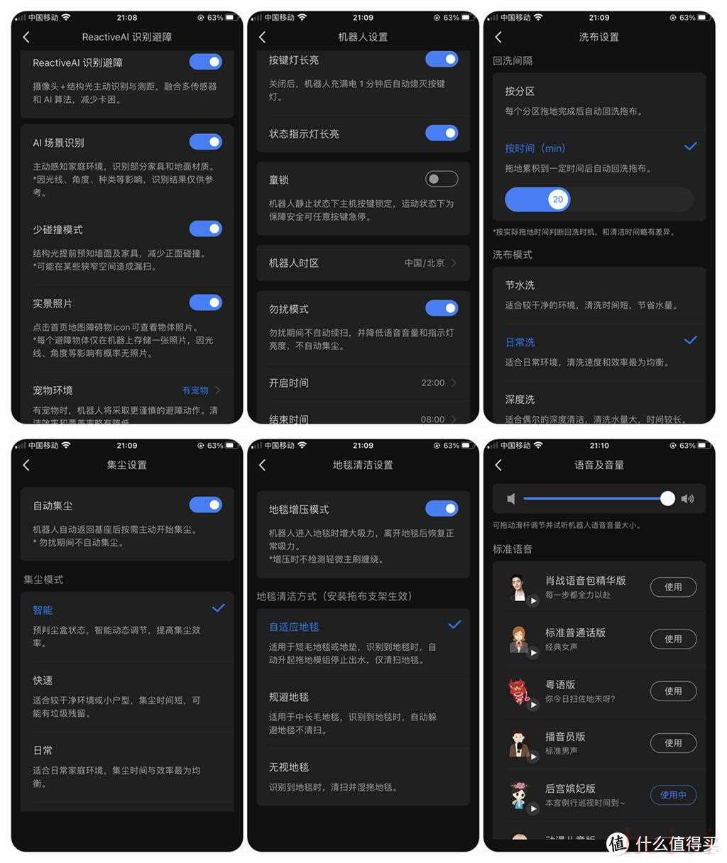 剩下的三台机器在APP中也可以做一些独特的设定,不过它们加在一起都没有石头一家多,为了节约读者们的时间,一张组合图带过。