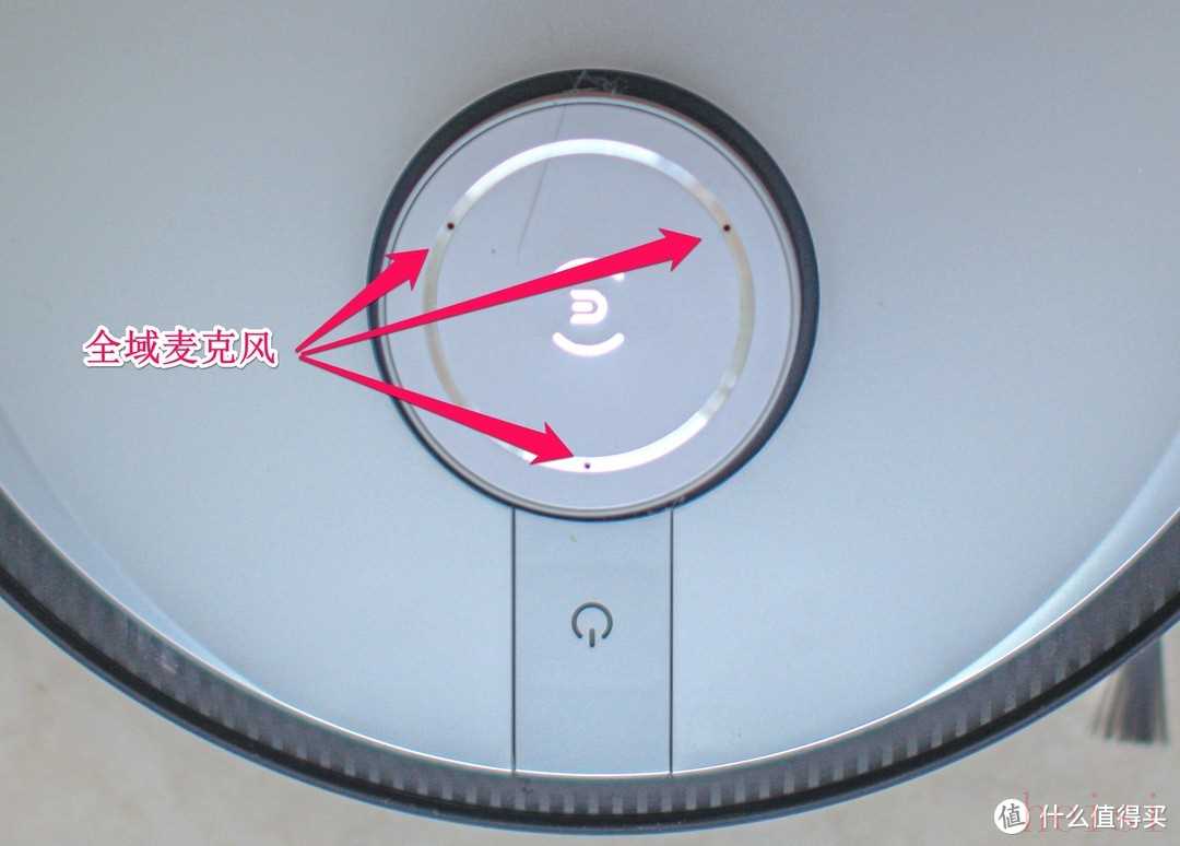 配合YIKO工作的,是位于顶置LDS上的这三个全域麦克风。科沃斯X1通过它,可以实现对用户的定位追踪功能,也因为这个功能,科沃斯X1 OMNI在扫地机届第一个实现了“召唤清扫”的功能,这个功能很有趣,当你需要临时清扫局部地面的时候,只需要站在需要清扫的位置,召唤YIKO过来清扫即可。