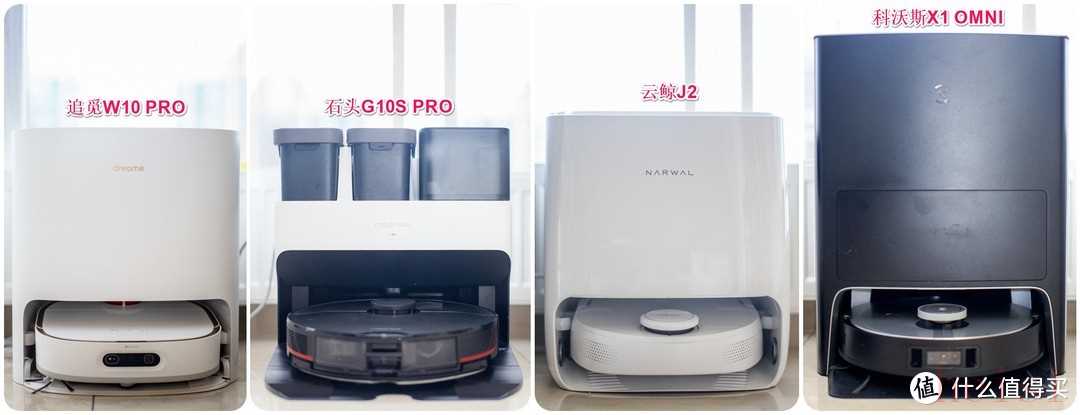 为了做这期活动,我收集了目前市面上口碑和热度综合排名最高的4款厂家的顶配机型,分别是追觅W10 Pro,石头G10S Pro、科沃斯X1 OMNI、云鲸J2。可以说都是代表了各家扫地机目前最顶级的水平,也是整个扫地机市场目前最高水平的一个缩影。让它们来个精彩大碰撞,看看到底谁实力更胜一筹,谁更值得买。
